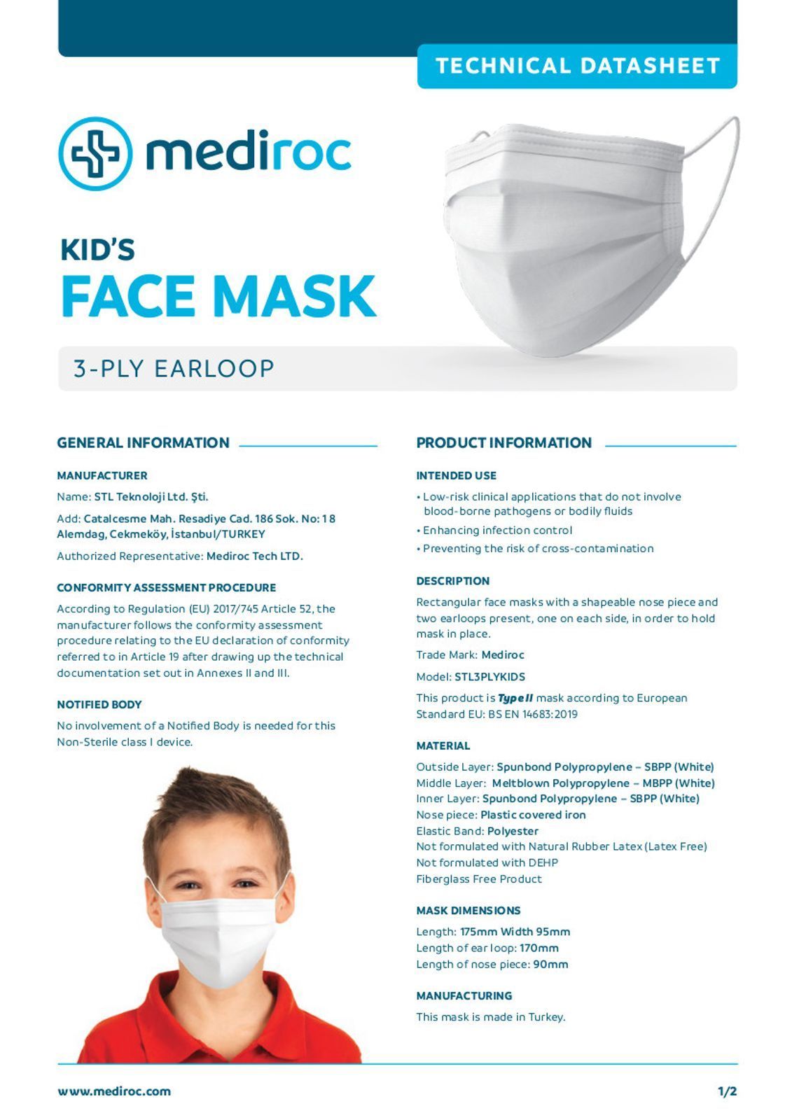 10 x Medizinische Kindermaske Einwegmaske Typ II > 98% Mundschutz Maske für Kinder