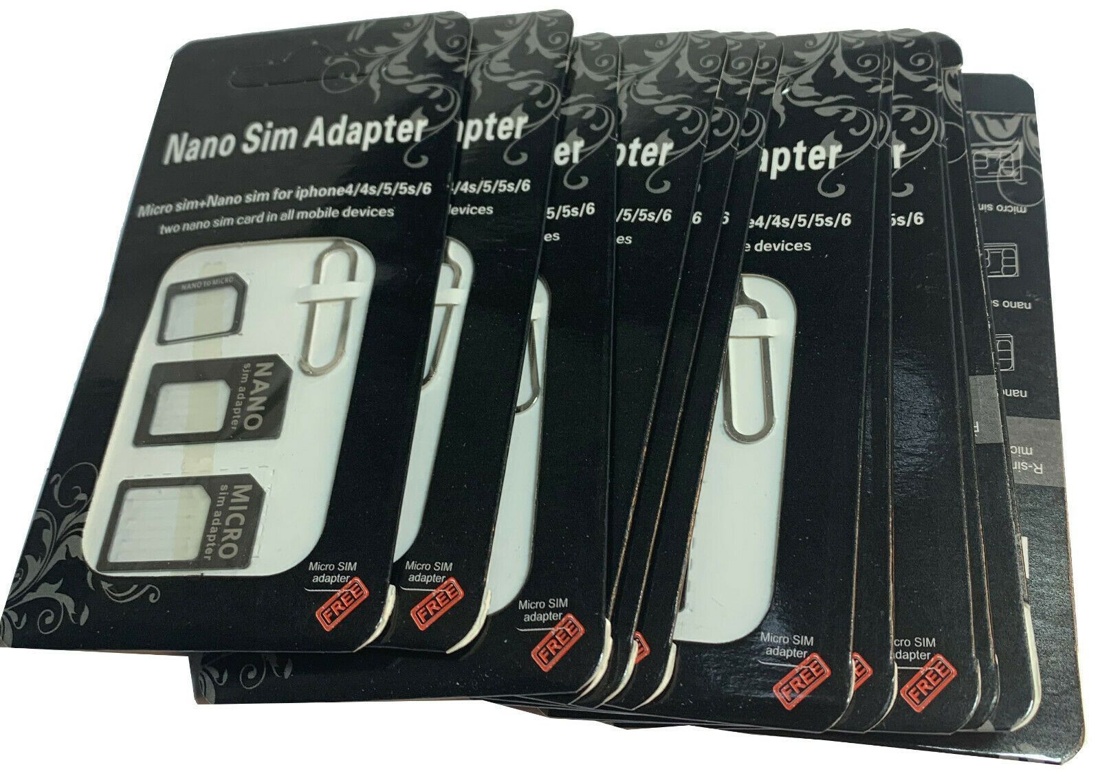 10 x Nano Micro Sim Karten Adapter Set Nadel iPhone Samsung Universal Schwarz