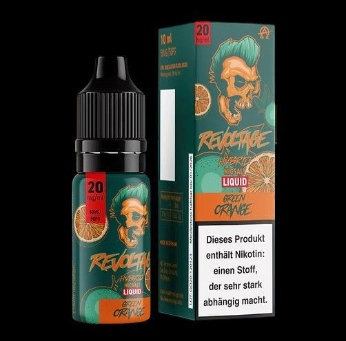 10 x Revoltage Green Orange Liquid 20mg ml Wenn du auf der Suche nach intensivem Geschmack bist. Bist du mit dem Revoltage Green Orange Liquid bestens bedient. INHALTSSTOFFE 20mg: pflanzliches Glycerin (VG), Propylenglykol (PG), Aroma, Nikotinbenzoat. Nikotingehalt: 20 mg ml Nikotingesamtgehalt (10
