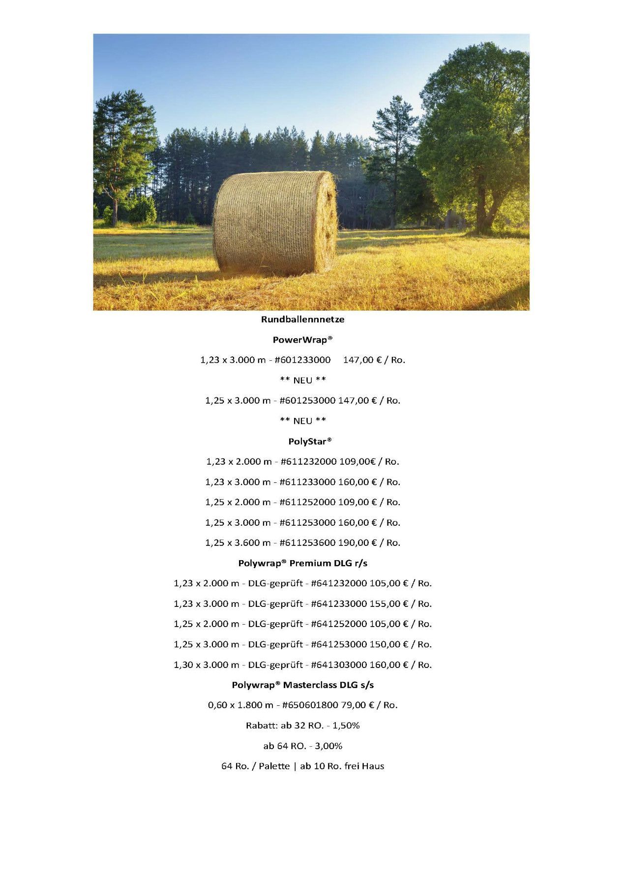 10 x Rundballennetz Pressgarn Heunetz Polywrap 1,25m x 2000 m 0,05€/ m
