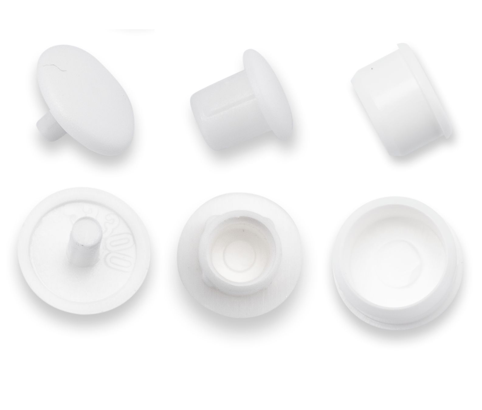 100 Abdeckkappen/ Abdeckungen für Bohrungen von 2,5-6 mm, Kunststoff, Weiß