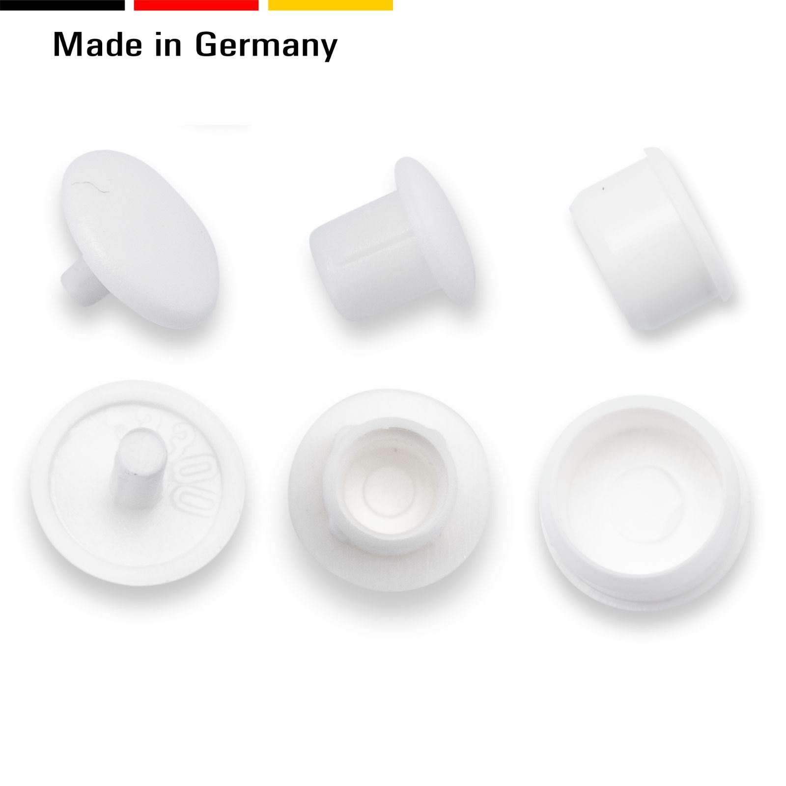 100 Abdeckkappen/ Stopfen/ Abdeckstopfen für Bohrungen 6-10 mm Kunststoff Weiß