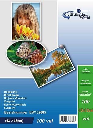 100 Blatt EtikettenWorld Fotopapier 13x18 cm 260g/ qm hochglänzend wasserfest