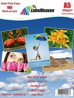 100 Blatt LabelHeaven Fotopapier A5 230g/ qm hochglänzend wasserfest