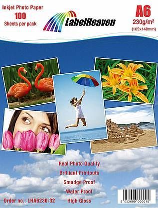 100 Blatt LabelHeaven Fotopapier A6 230g/ qm hochglänzend wasserfest