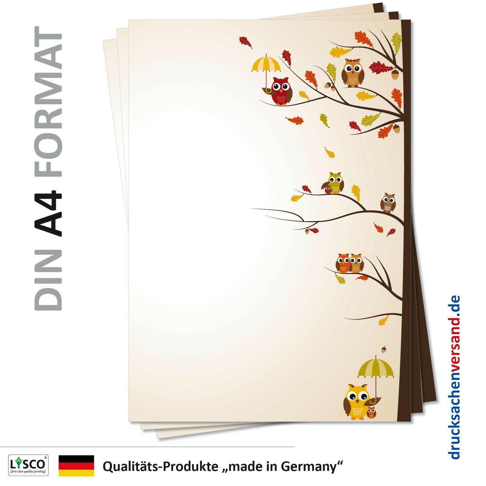 100 Blatt Motivpapier-5139 A4 gelbe braune Herbst Eulen Briefpapier Eulenpapier