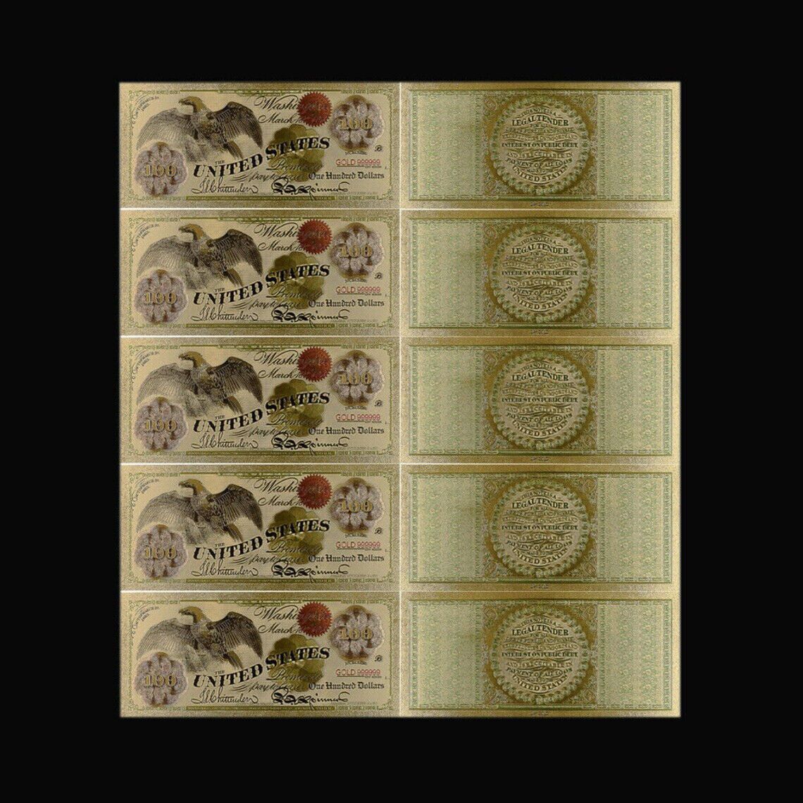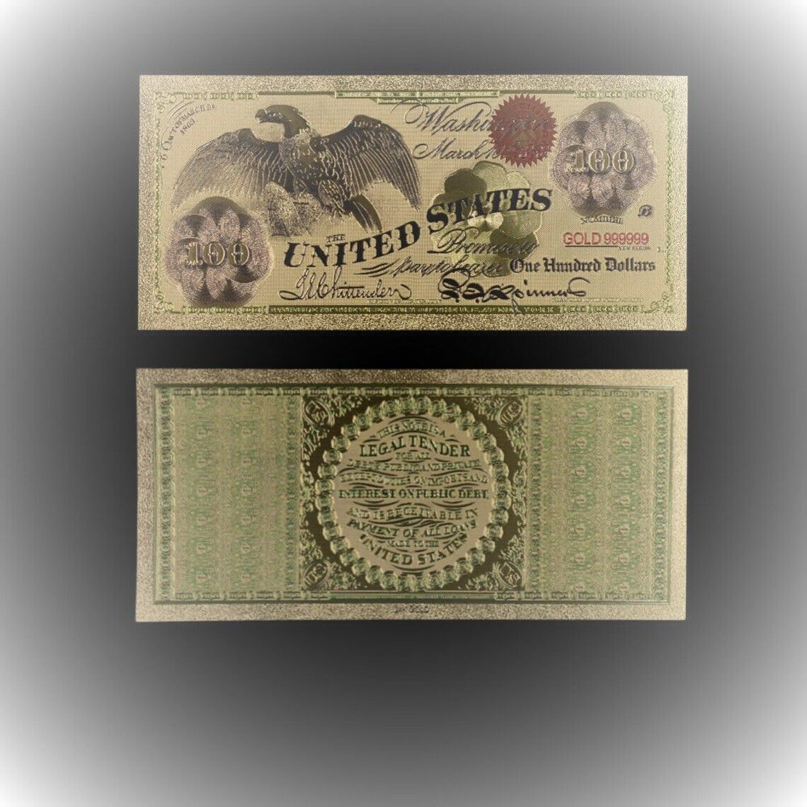 Goldfolie Banknote -100 Dollar - USA 1863 - Nachdruck vergoldet Folie - sehr selten Technische Information zum Artikel Material: 24 K vergoldet Größe: original Größe Erhaltung: Neu Verpackung: Folie Das ideale Geschenk oder natürlich auch zum selber sammeln Natürlich handelt es sich nicht um echtes