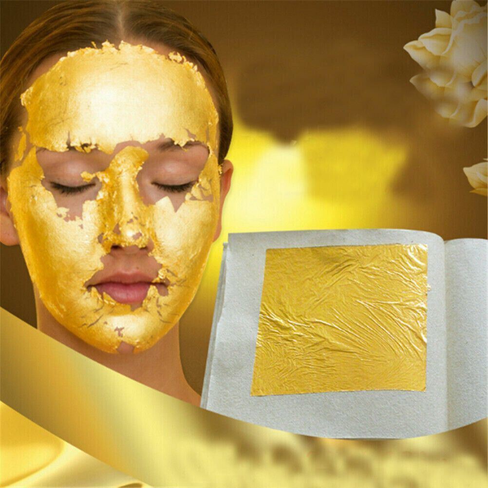100 % echtes 24-Karat-Blattgold, Blattkunst, essbar 25 Stück Material Gold Größe: ca. 29 mm -Hochwertige Goldfolienblätter -Kann für Gesichtsschönheit, Hautpflege, Dekoration von Getränken verwendet werden -Kann für Lebensmitteldekoration, Innenarchitektur, Nagelkunst, Bastelprojekte, Hautbehandlung