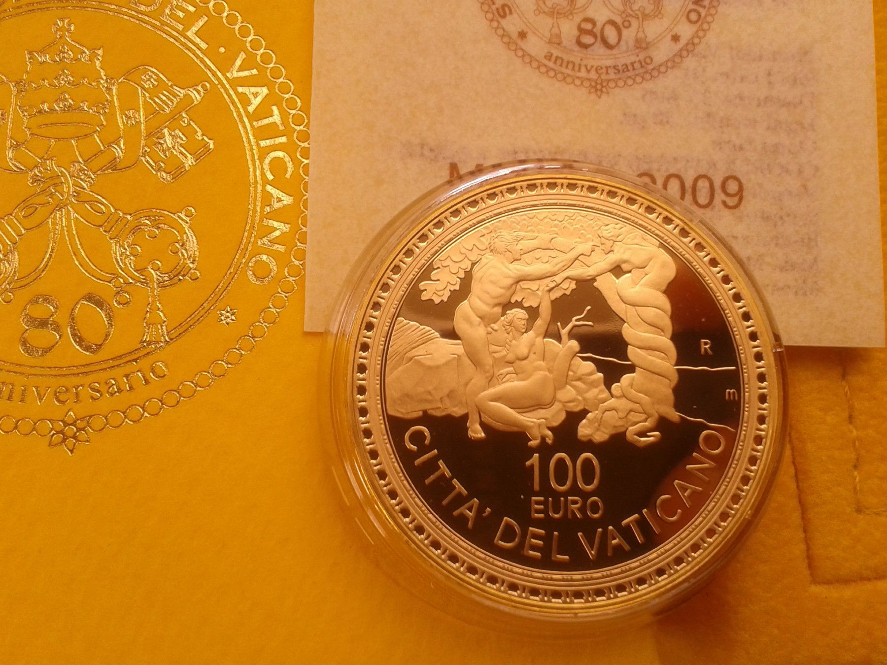 100 euro 2009 PP Vatikan Gold Papst Benedikt XVI. Vertreibung aus dem Paradies