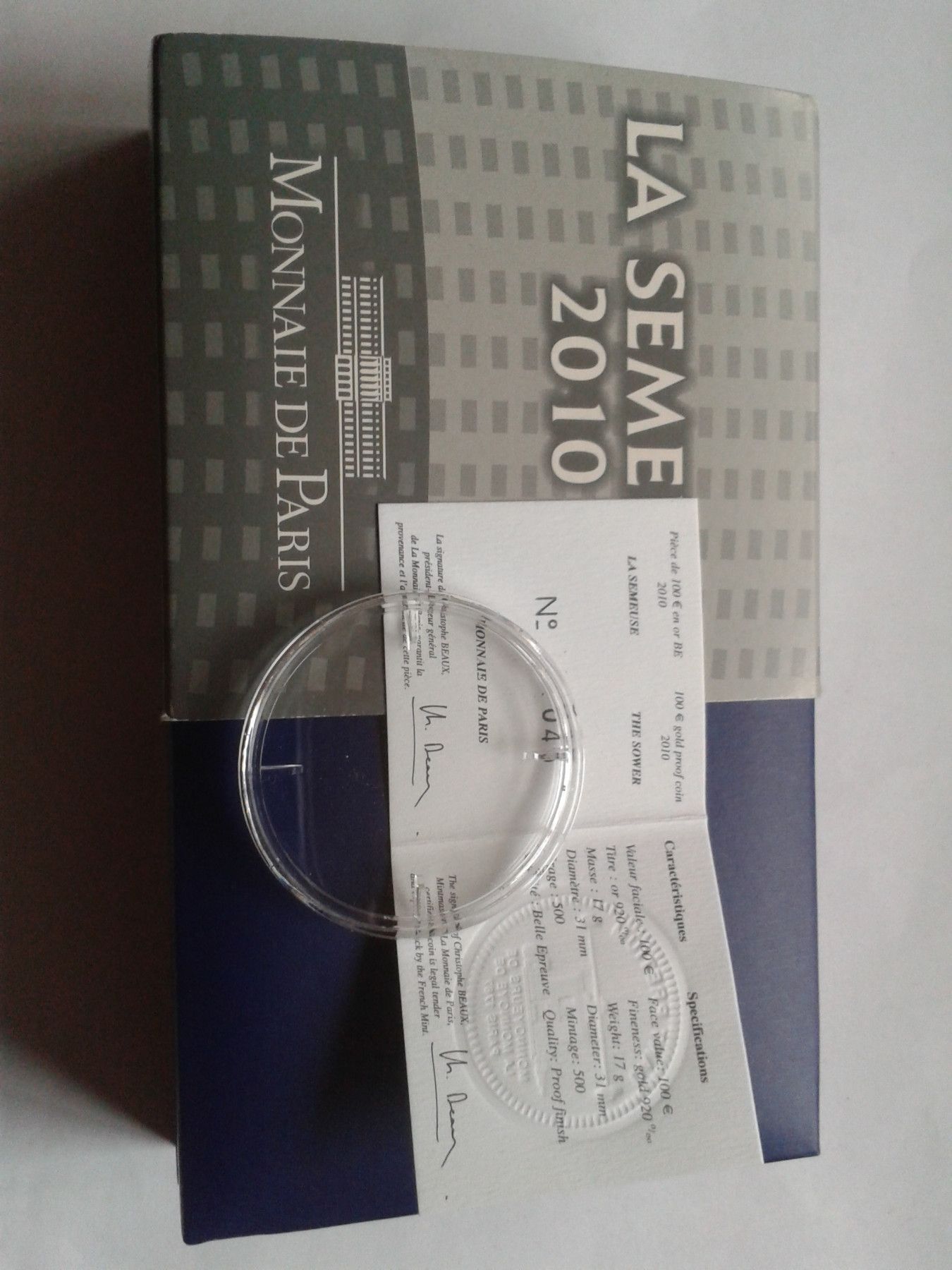 100 euro 2010 PP Frankreich Säerin Münzdose, Etui, Zertifikat und Umverpackung