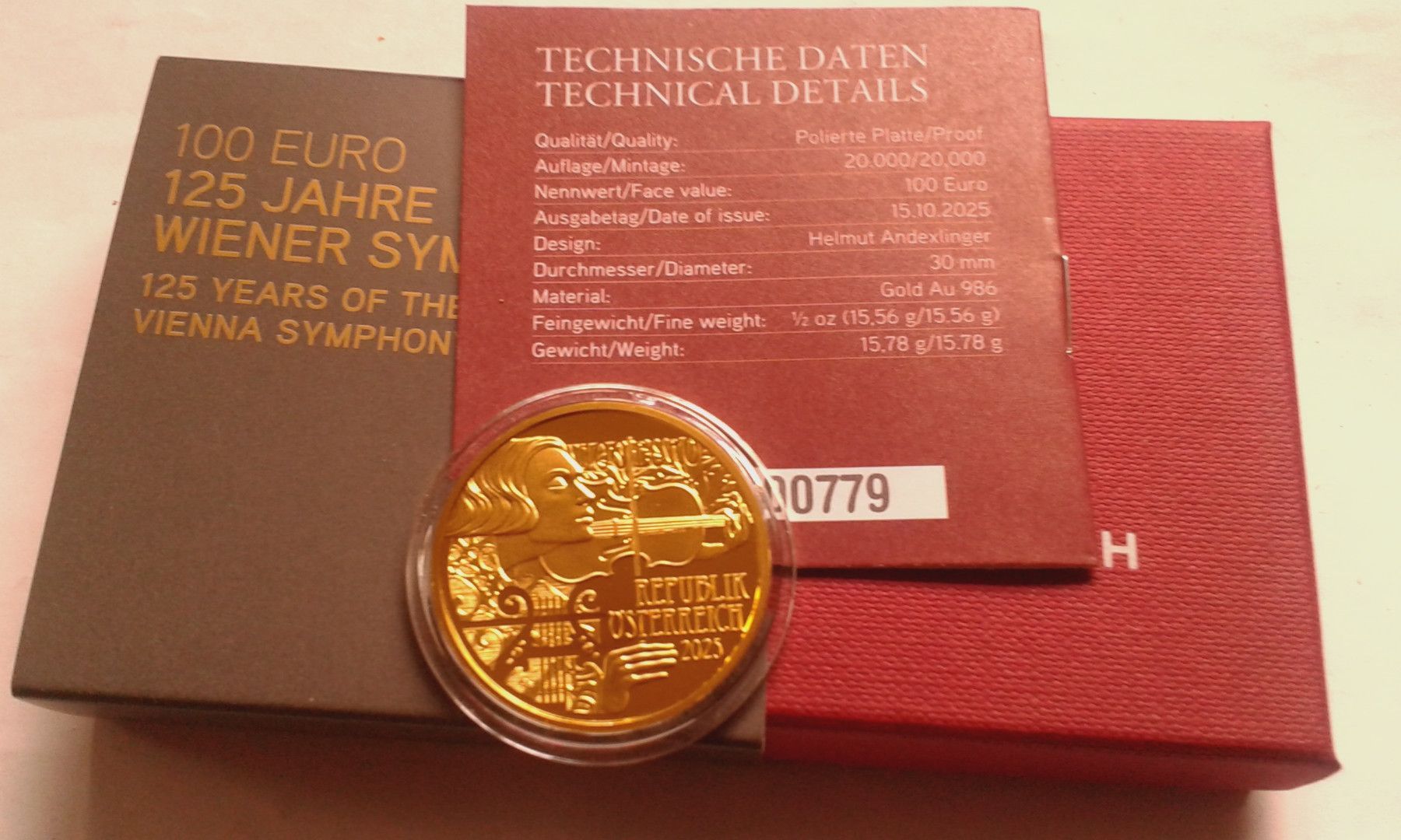 100 euro 2025 PP Österreich Wiener Philharmoniker 15,78g 986er Dukatengold 1/2 Unze