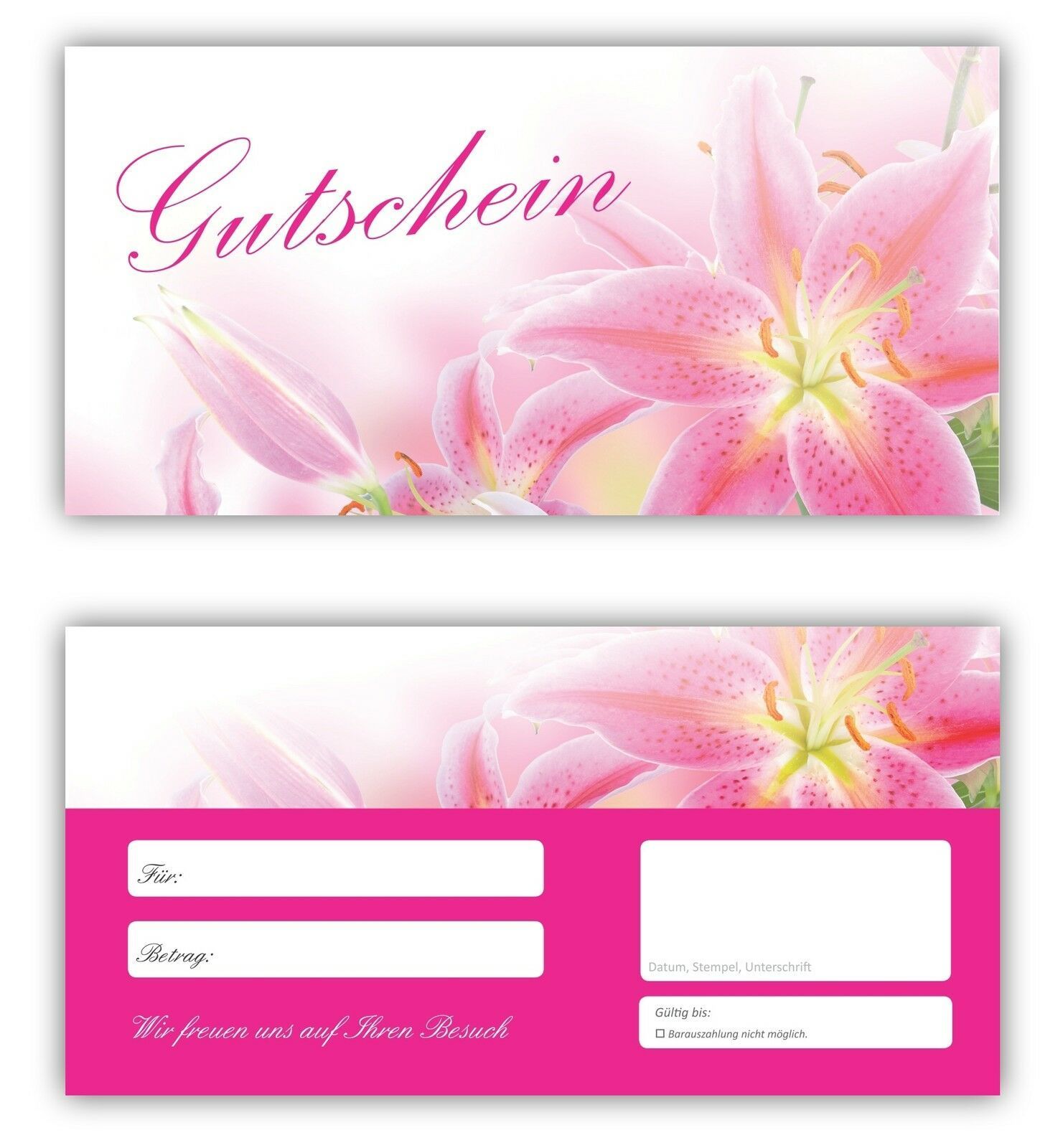 100 Geschenkgutscheine (Blumen-682) Lilien rosa Gutscheine Wellness Entspannung