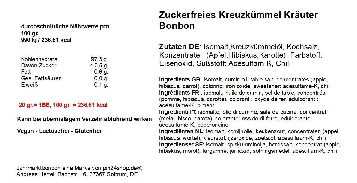 100 gr. Kreuzkümmel Kräuter-Bonbon Zuckerfrei