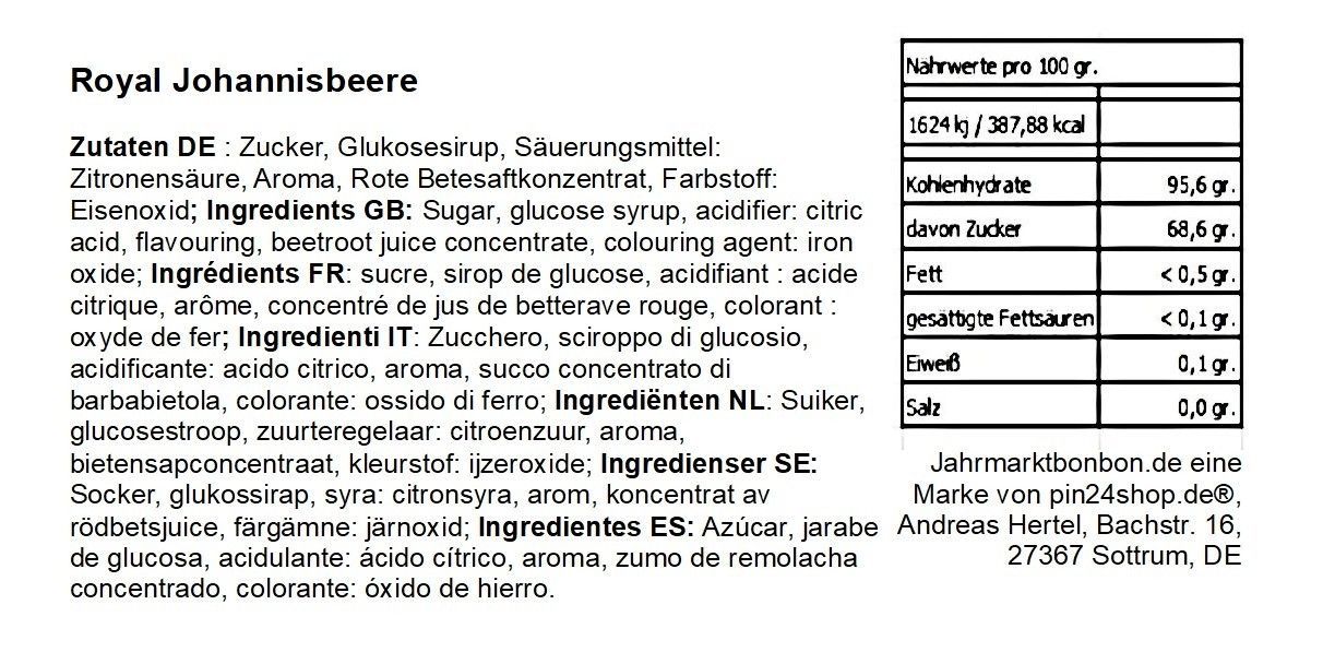 100 gr. Royal Johannisbeere - ein königliches leckeres Bonbon von Jahrmarktbonbon