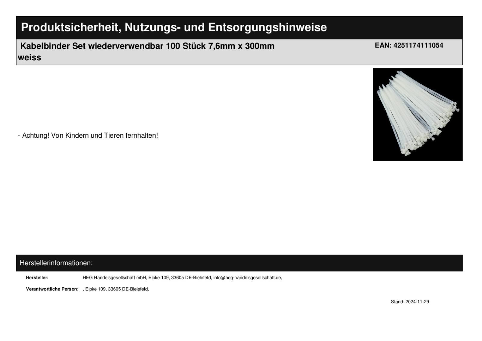 100 Kabelbinder wiederverwendbar 100 Stück lösbar 7,6x 300mm weiss wiederlösbar