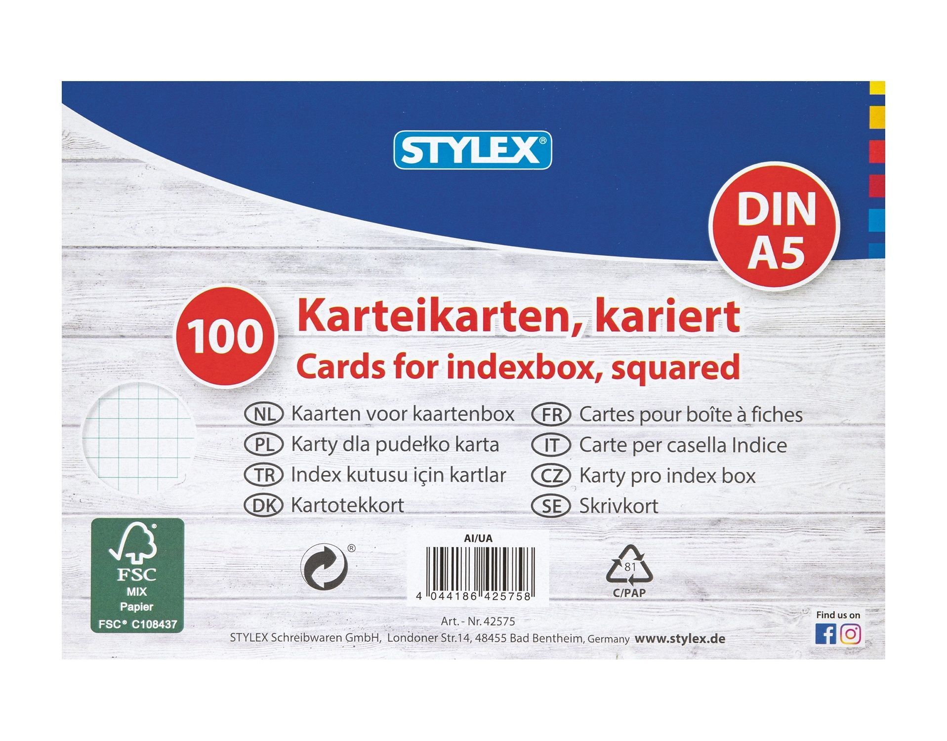 Karteikarten Format: DIN A5 Farbe: weiss Grammatur: 140g/m² kariert