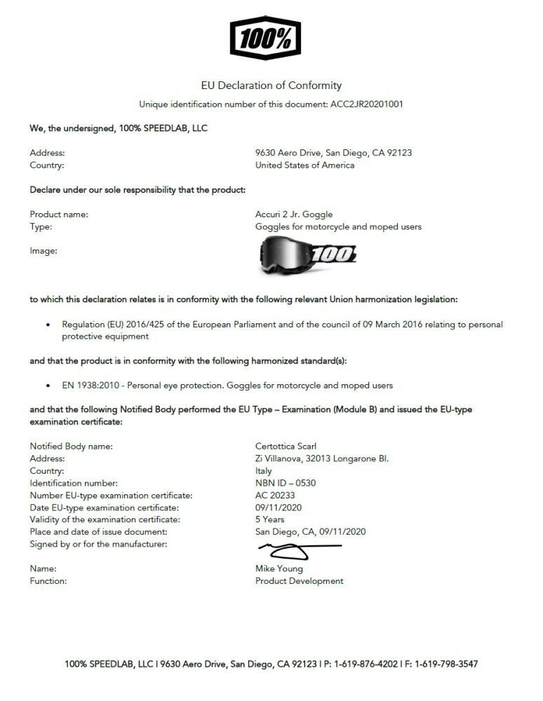 100% Kinder Skibrille Accuri 2 Fluo Yellow