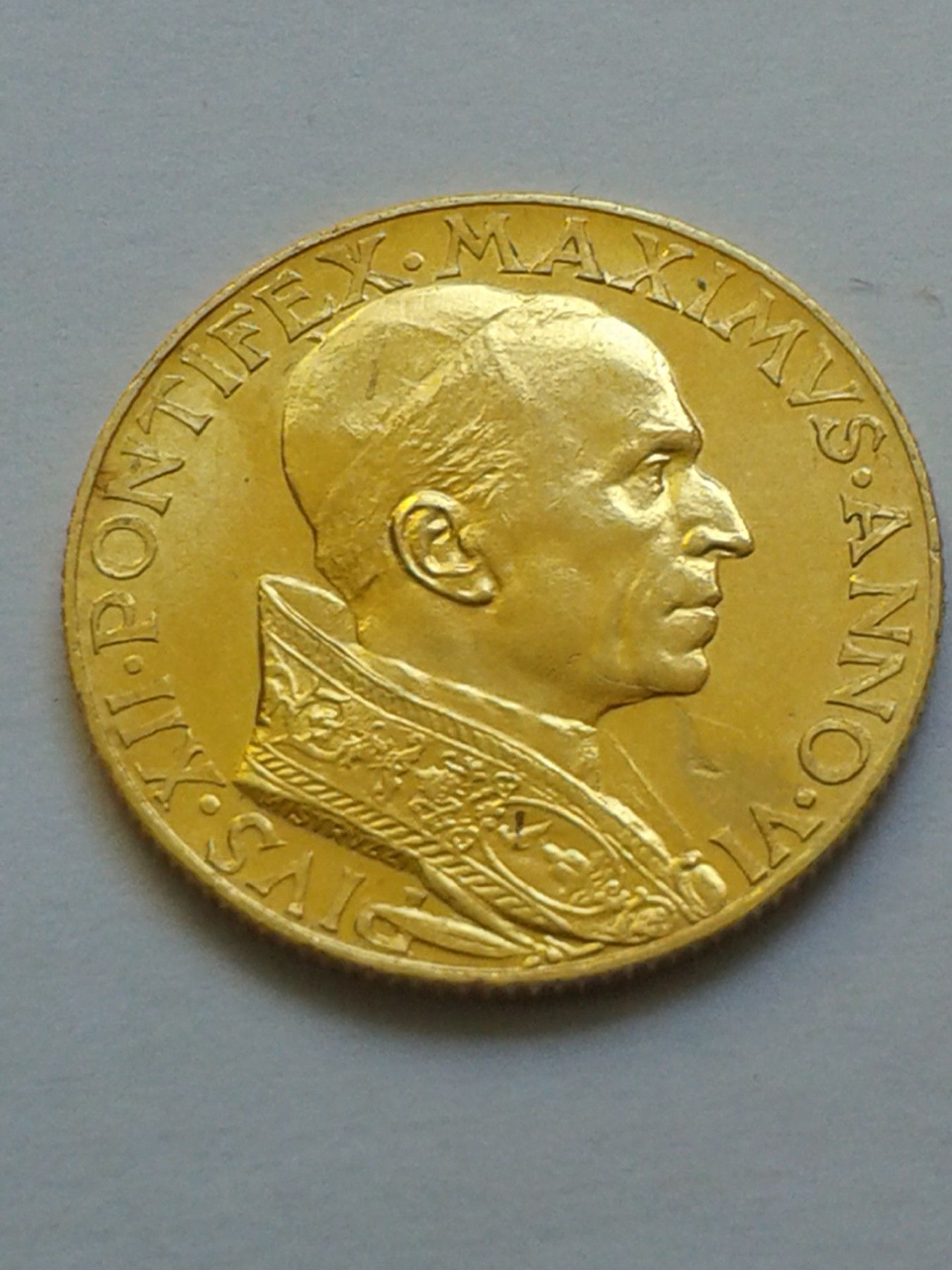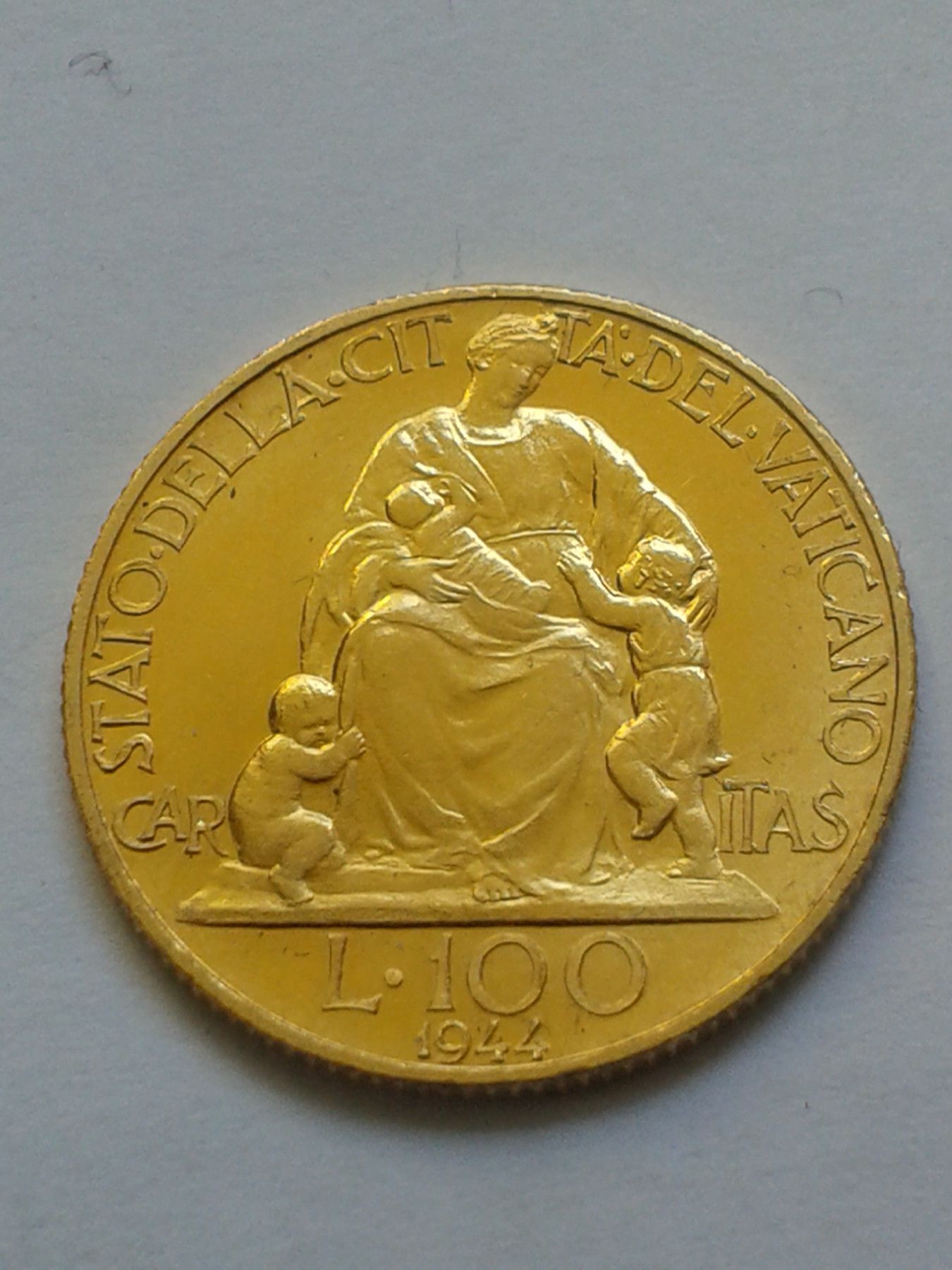 100 Lire 1944 Gold Vatikan Papst Pius XII. stempelglanz nur 1000 Stück geprägt - Rar