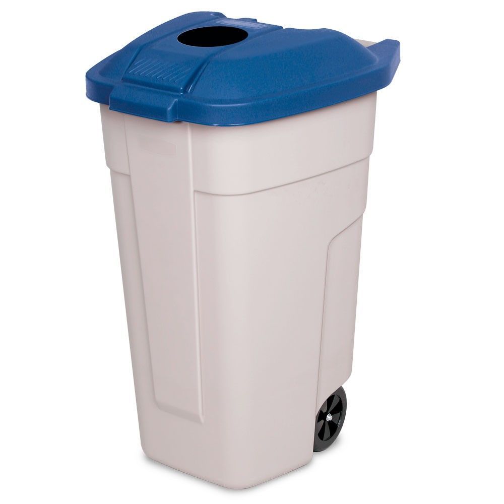 100 Liter Tonne mit Einwurföffnung im Deckel, BxTxH 510x550x850 mm, beige/ blau