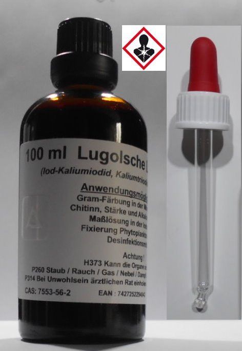 100 ml Lugolsche Lösung 5%ig (Iod-Kaliumiodid, Kaliumtriiodid-Lösung)