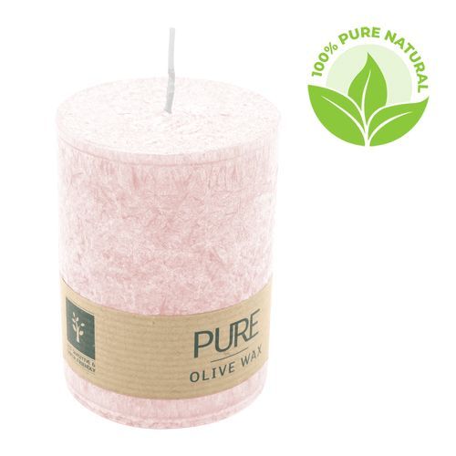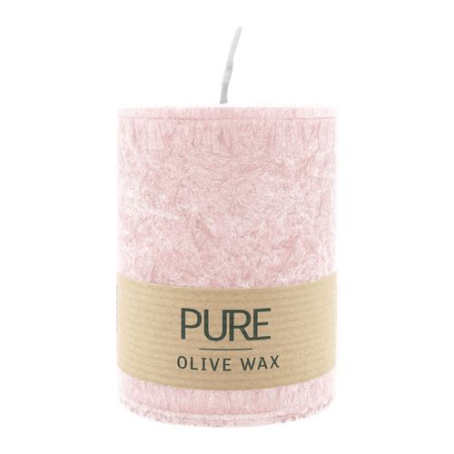 100% PURE, OLIVE WAX, vegane Stumpenkerze, Antikrosa, WENZEL, 90/70 mm, Brenndau