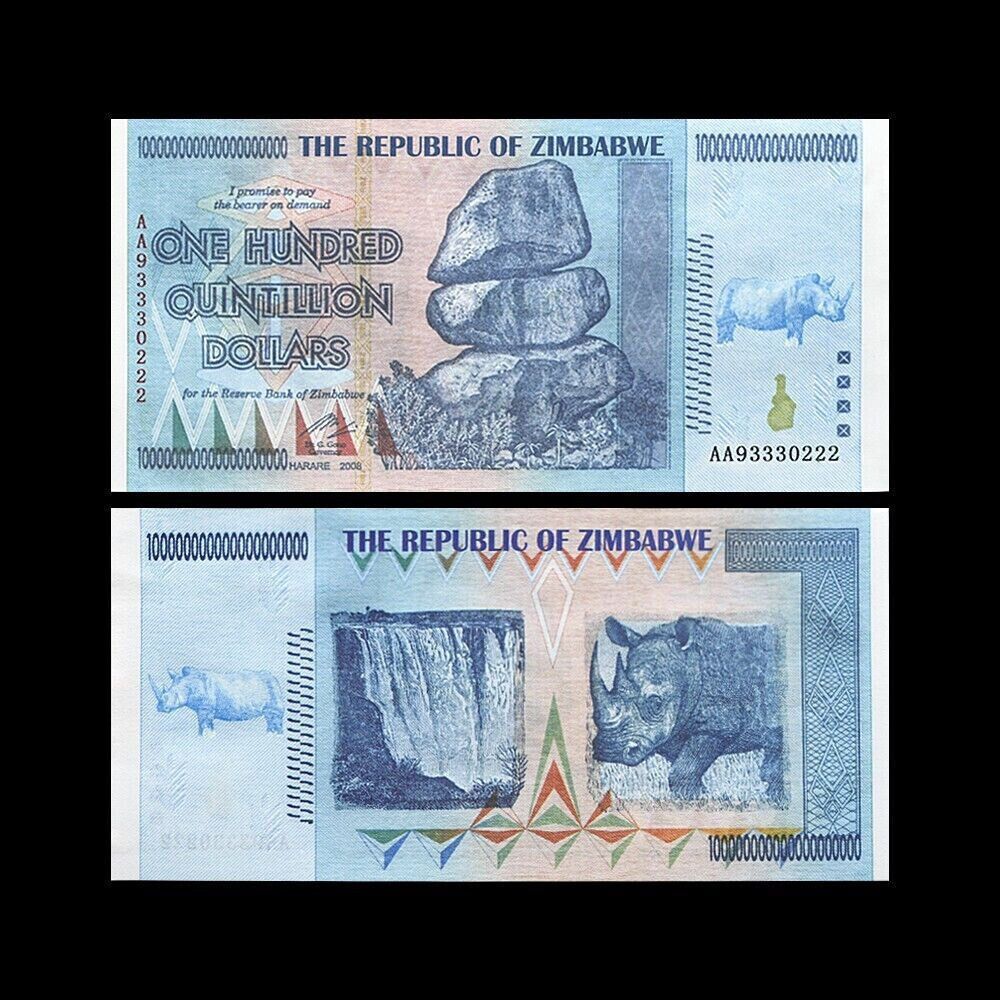 100 Quintillion $ AA Dollars/ Banknote Zimbabwe/ Bankfrisch UNC(Zimb2010254)