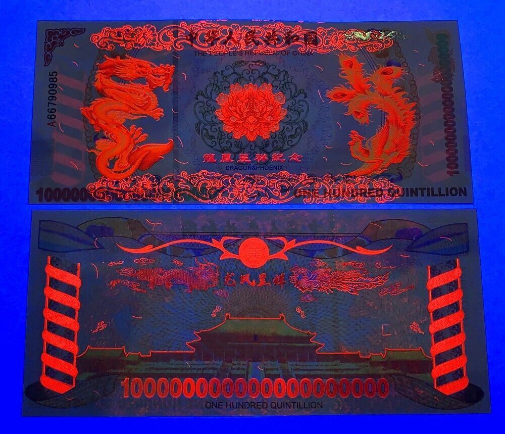 Banknote - 100 Quintillion chinesischer gelber Drache - unzirkuliert und Bankfrisch - sehr selten UNC-Banknoten-Sammlung UV Fluoreszenz Noten- wie abgebildet Technische Information zum Artikel Größe: ca. original Größe Erhaltung: Neu Verpackung: Folie Das ideale Geschenk oder natürlich auch zum selb