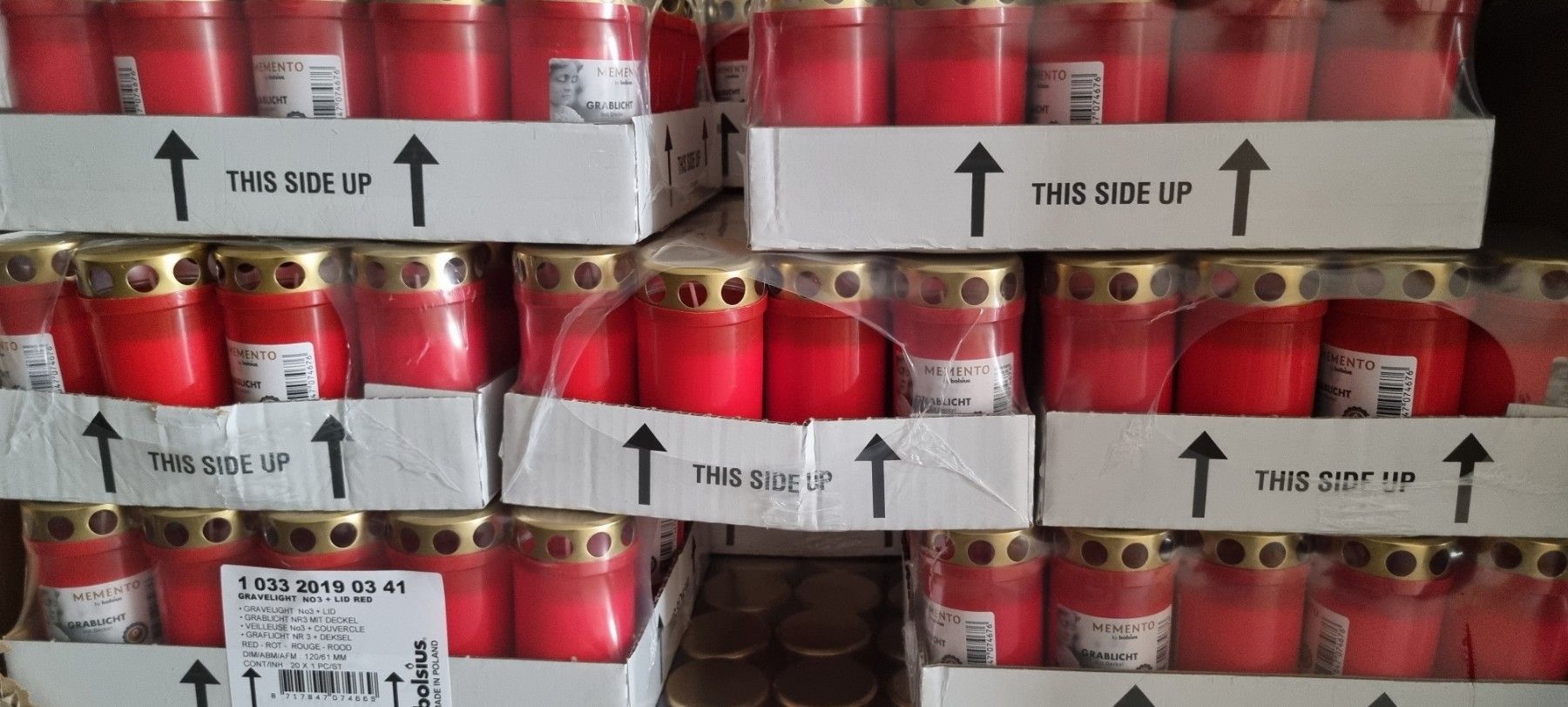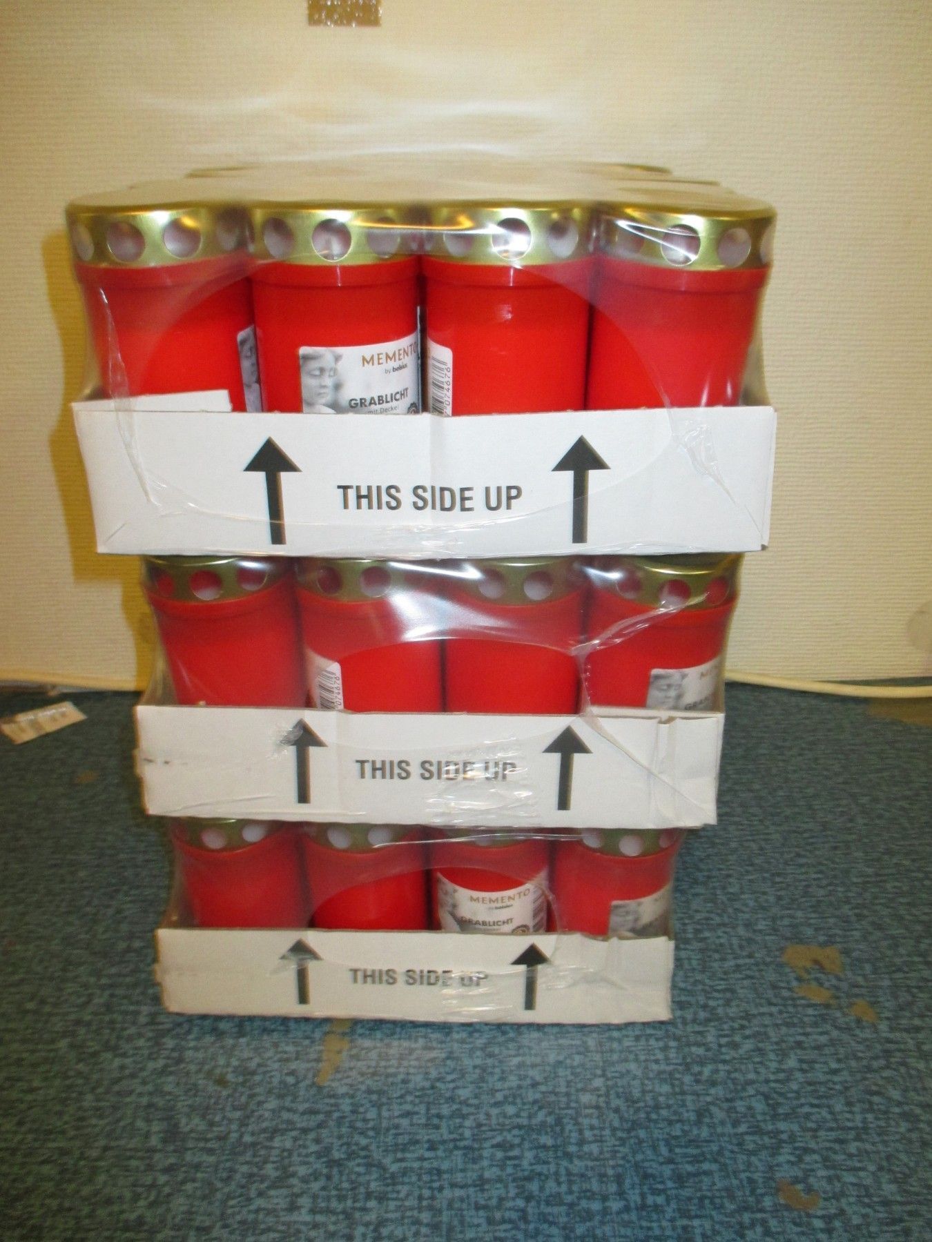 100 Stück Grablicht Nr. 3 mit Deckel rot