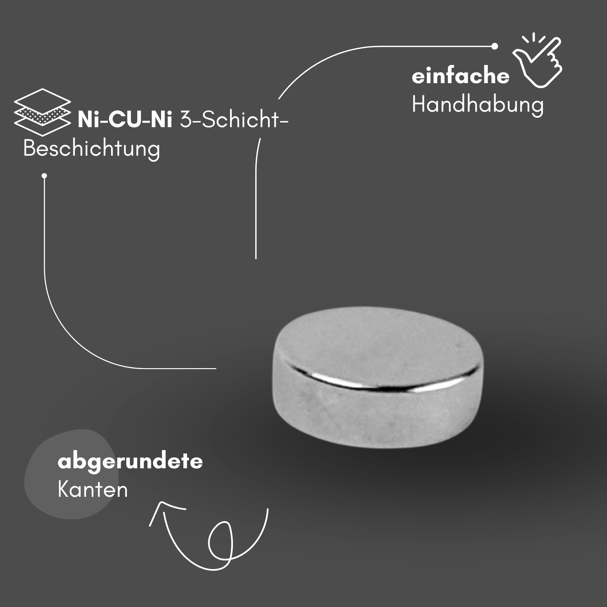 100 Stück Neodym Magnet Ø 15mm x 5mm - Starker Scheibenmagnet - N40 Supermagnet - Hoh
