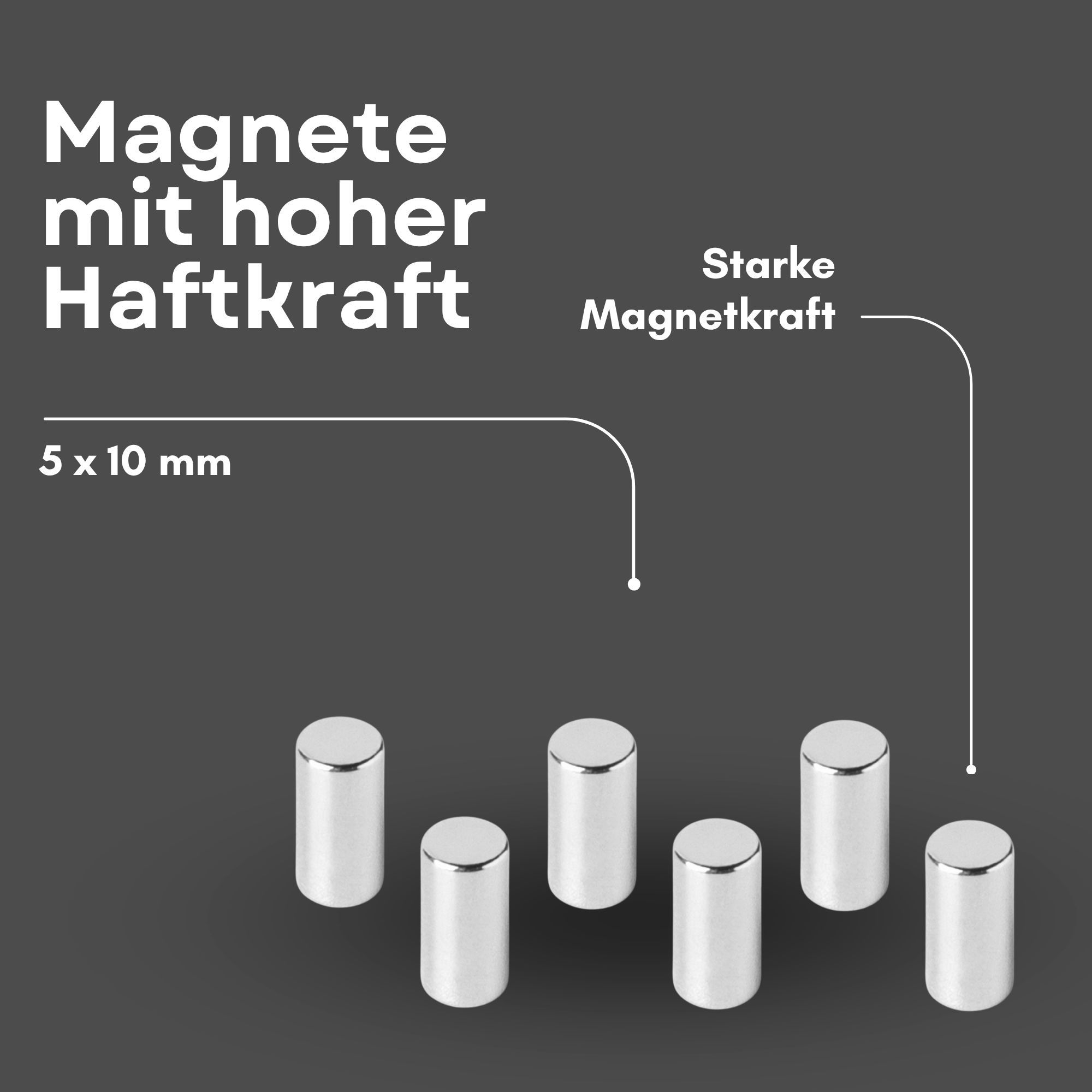 100 Stück Neodym Magnet Ø 5mm x 10mm - Starker Scheibenmagnet - N42 Supermagnet - Hoh