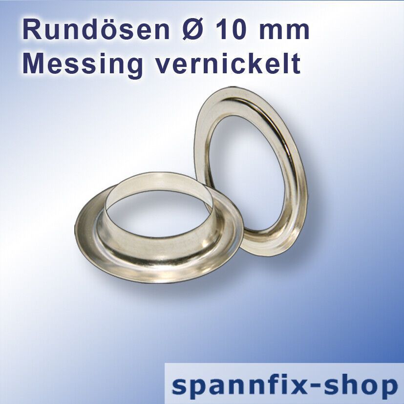 100 Stück Rundösen Ø 10 mm, Messing vernickelt LKW Planen Öse Werbebanner Banner