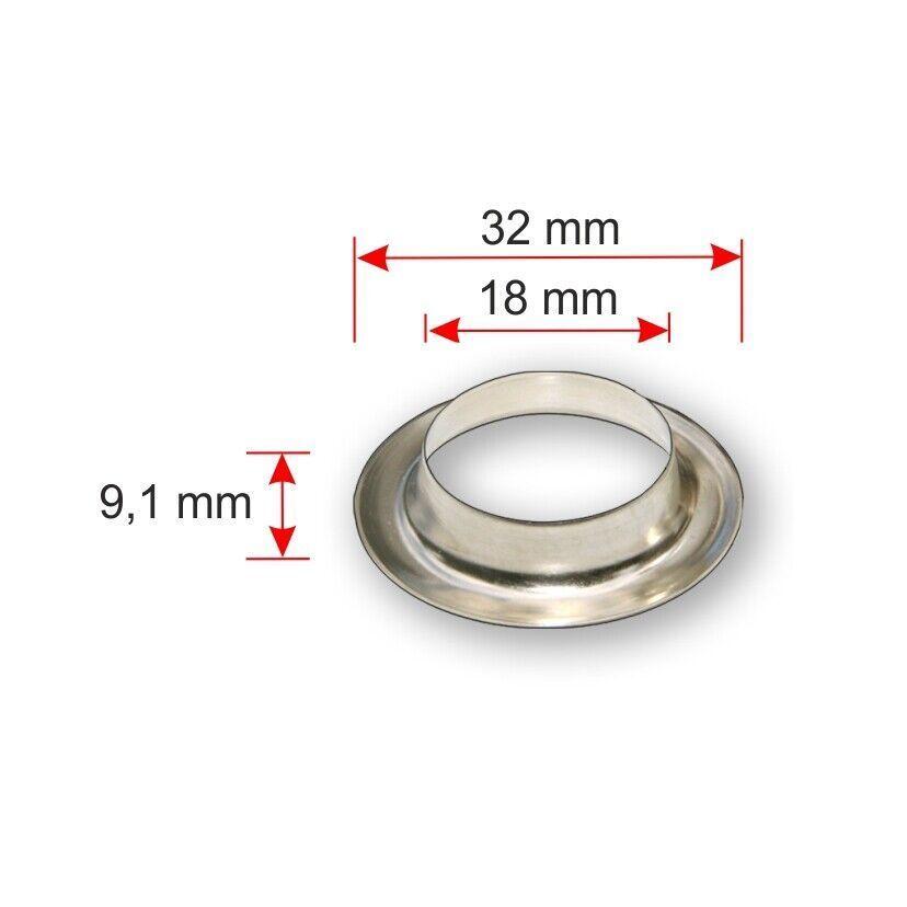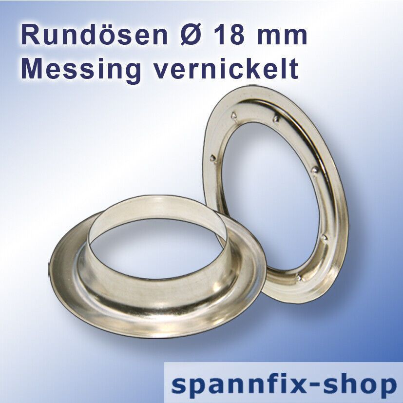 100 Stück Rundösen Ø 18 mm, Messing vernickelt LKW Planen Öse Werbebanner Banner