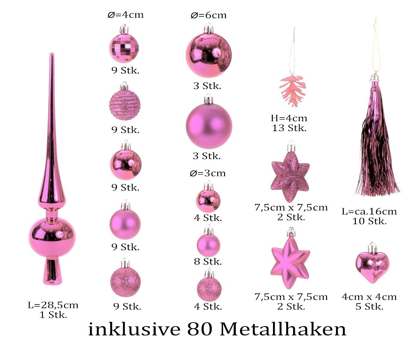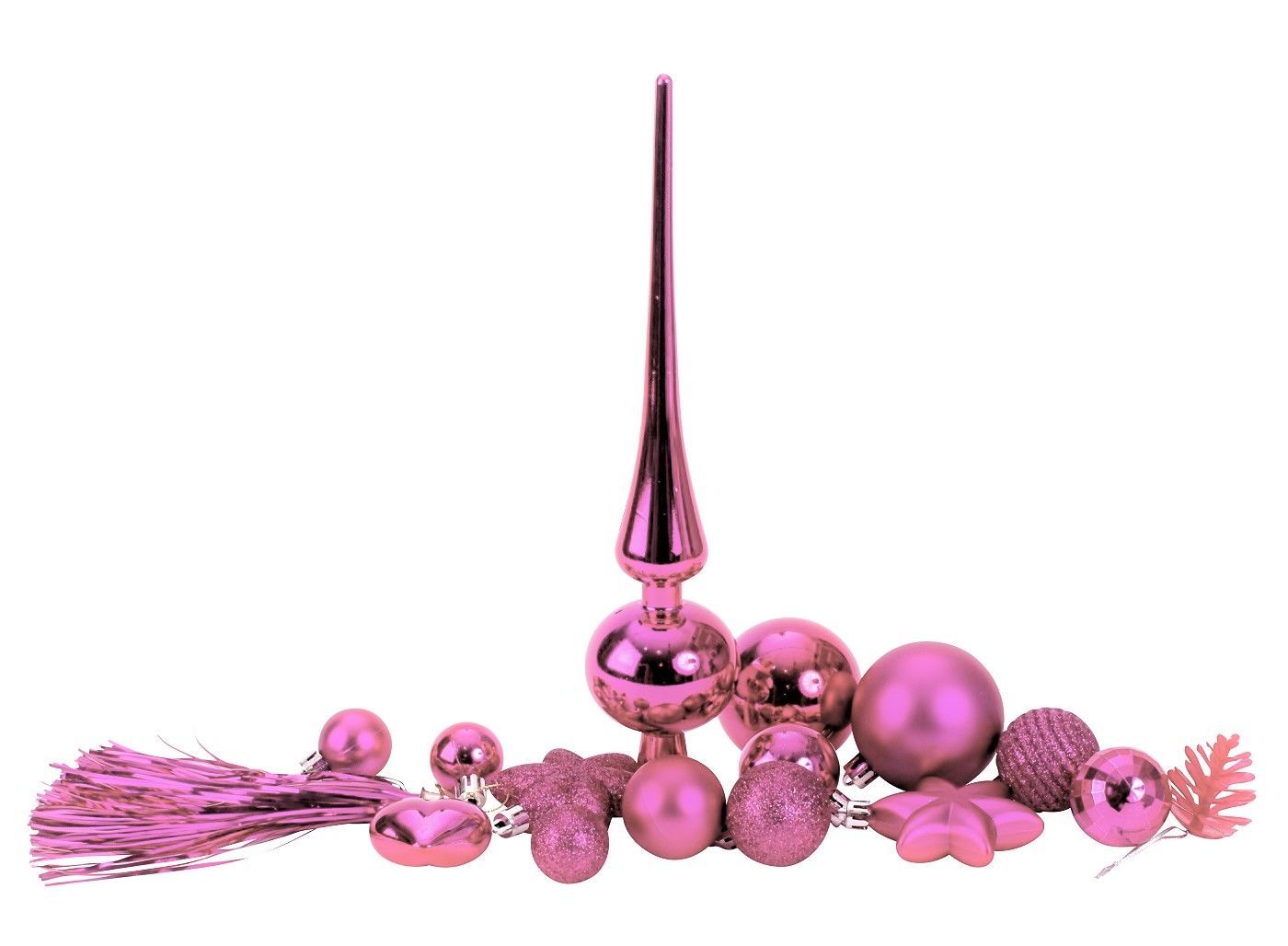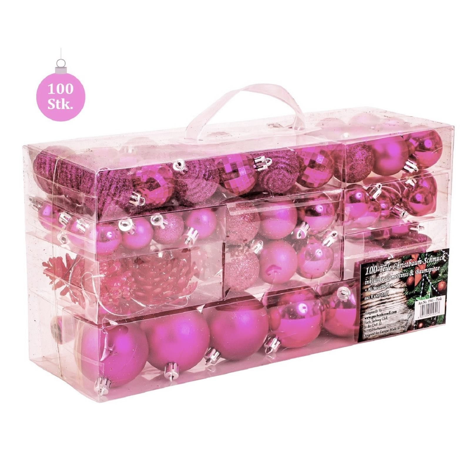 100-teiliges Set Weihnachtskugeln Lamettini Rosa Pink Spitze Anhänger