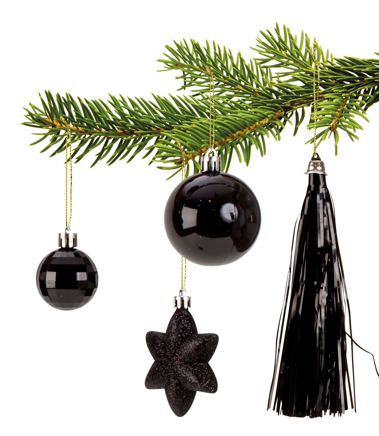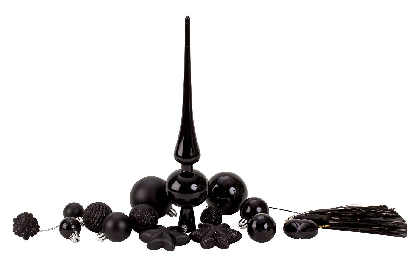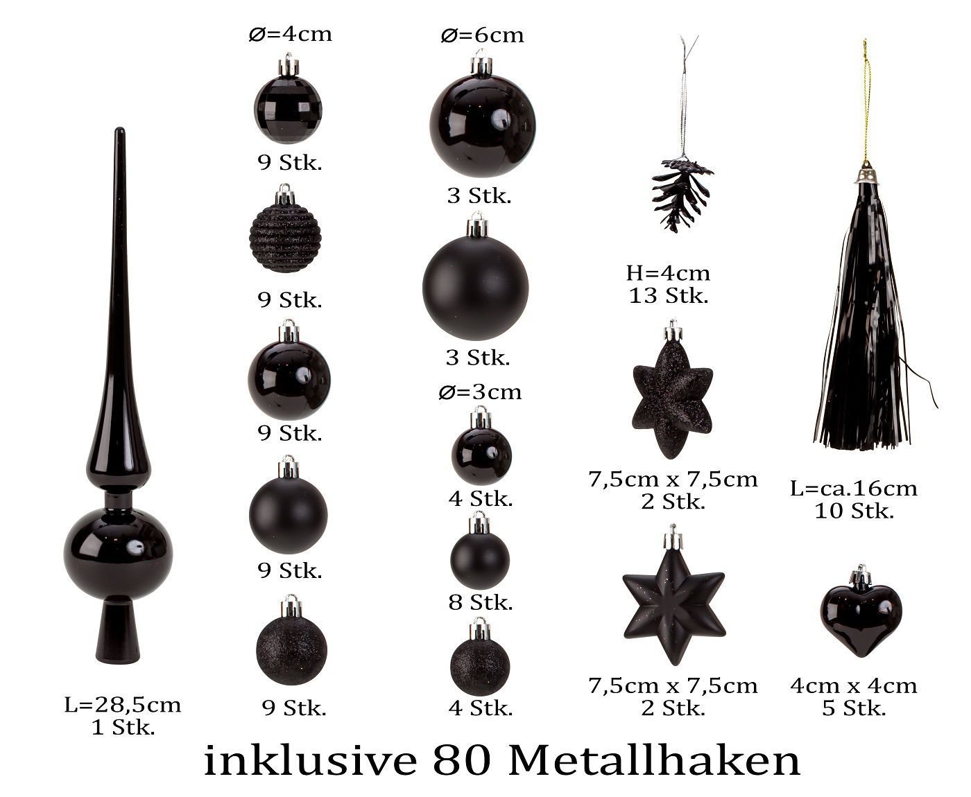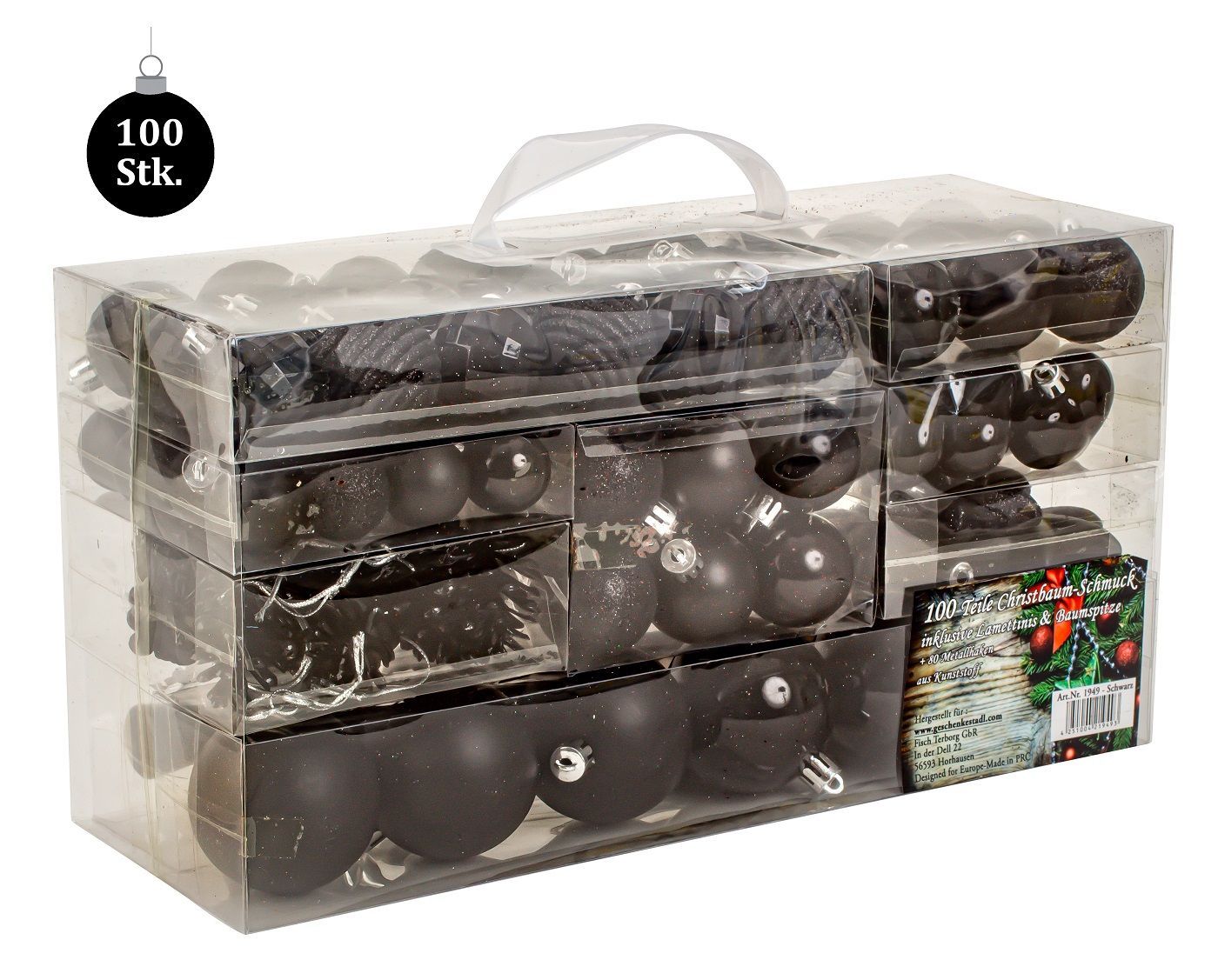 100-teiliges Set Weihnachtskugeln Lamettini Schwarz Spitze Anhänger