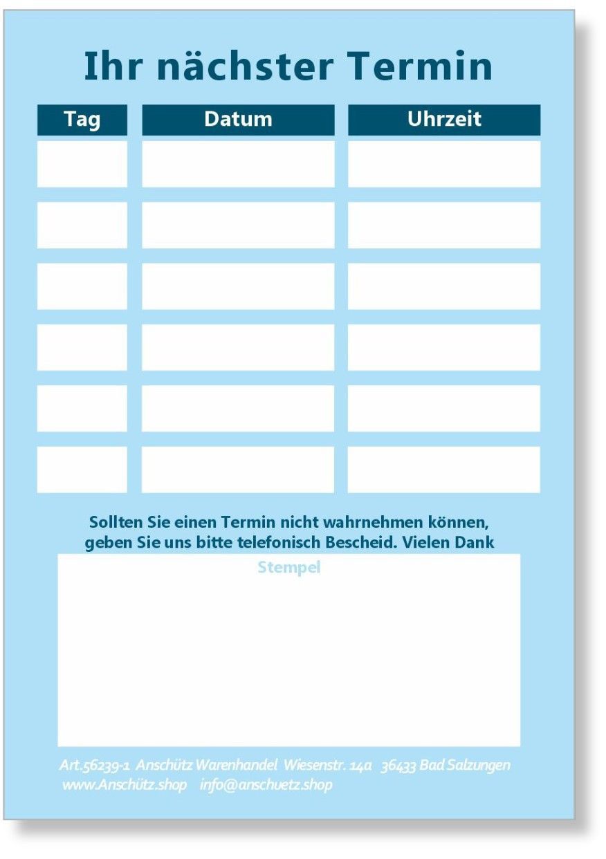 100 Terminzettel für Praxis Ärzte Physio 2 Terminblöcke à 50 Terminkarten blau