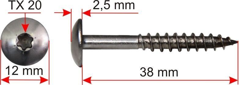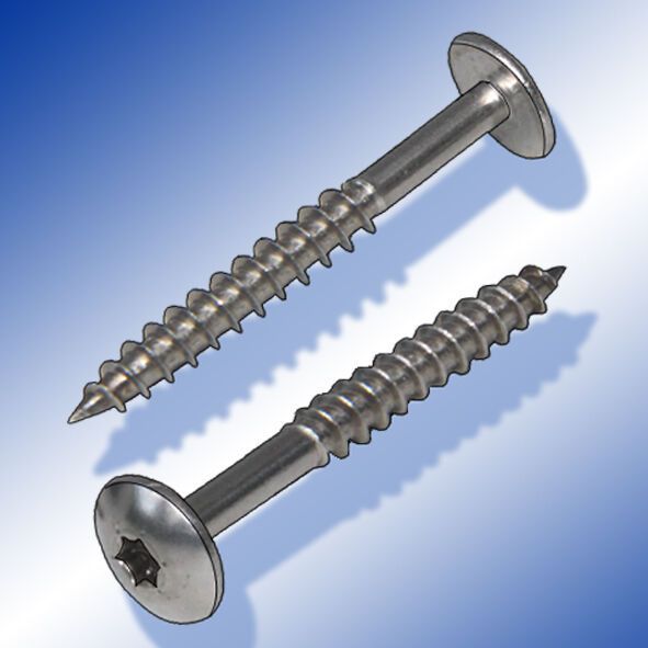 100 Stück TRESPA - Fassadenschrauben 4,8 x 38 mm mit Innenvielzahn TX 20 aus Edelstahl Thrusshead screw 4,8 x 38 mm for wood constructions - TX 20 Artikel-Nr.: 8864.20.038.048 Ausführung: mit großem Kopf und Innenvielzahn Antrieb: TORX TX 20 Material: V2A Edelstahl stainless steel AISI 304 Größe: Du