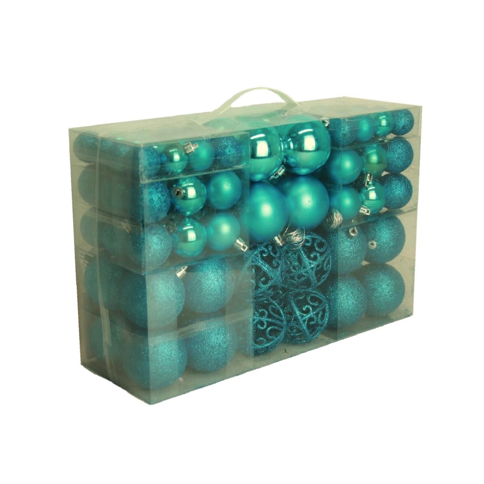 100 Weihnachtskugeln Türkis mit Metallhaken Christbaumschmuck