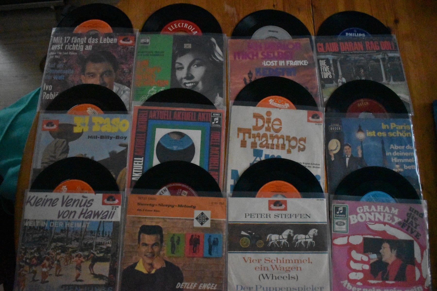 Ich biete hier wieder ein SUPER MEGA 7" Single Vinyl Überraschung PAKET an!!! 100 x tolle Vinyl Single Sammlung mit viel Power Alle im Original Bildcover Von A bis Z alles möglich, von Deutsch bis Pop - Soul - Beat - Jazz usw, Zustand überwiegend sehr guter Gebrauchszustand