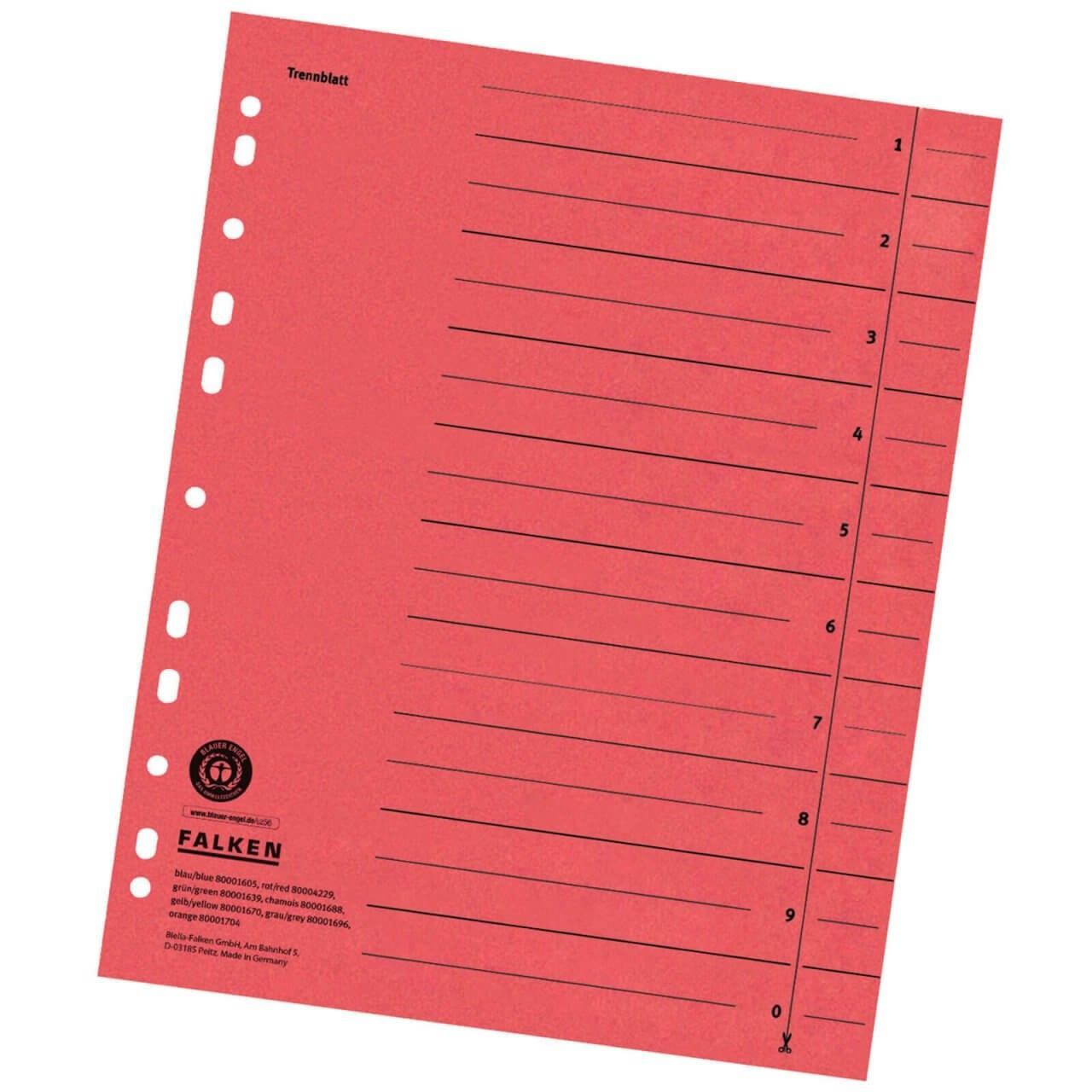 Falken 100 x FALKEN Trennblätter DIN A4 liniert Rot