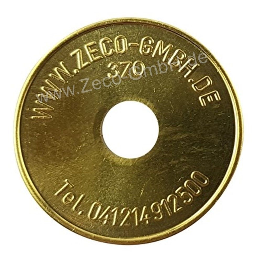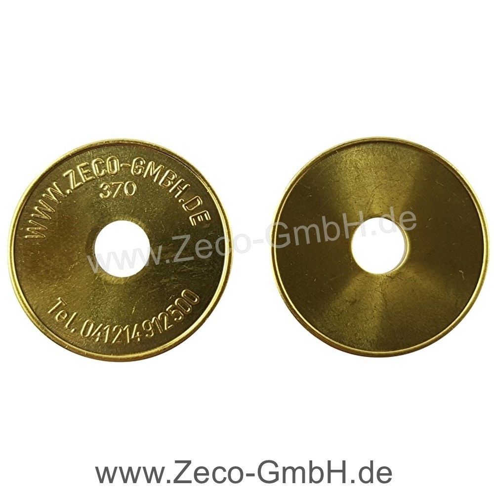 Wertmarke Zeco 370 kompatibel mit Miele T.-Nr. 1699370 Miele WM 2, APCL050 VE = 100 Stück Diese Wertmarke hat folgende ca. Abmaße: Durchmesser: 24,0 mm Dicke Stärke: 1,8 mm Lochdurchmesser: 6,0 mm 10 0 x Waschmarke WM2 wie Miele 1699370 (24mm x 1,8mm) * kompatibel mit Miele Wertmarke 1699370, WM-2,