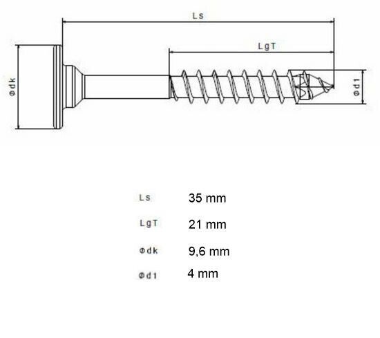 100 x Korpusschraube 4 x 35 Torx Teilgewinde Schrankverbinder Rückwandschraube