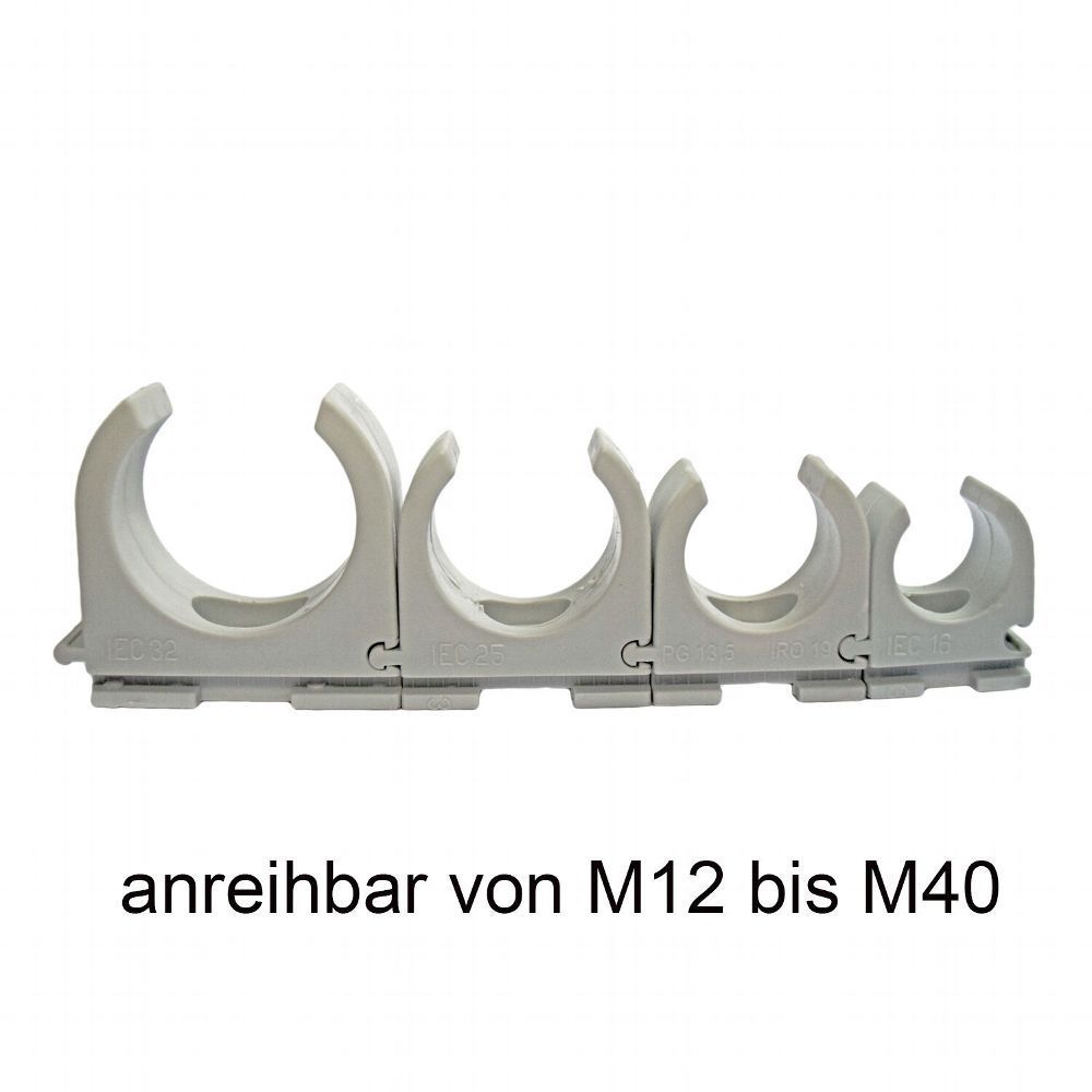 100 x M12 Reihen-Klemmschelle M5 Langloch, Clipschelle, Rohrschelle Quick