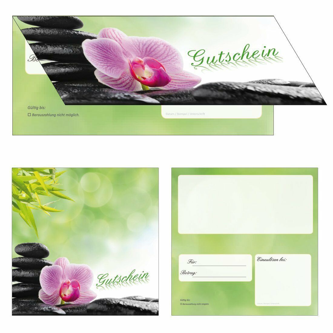 100 x Premium Geschenkgutscheine Klappkarten Wellness Erholung Massage Feng Shui
