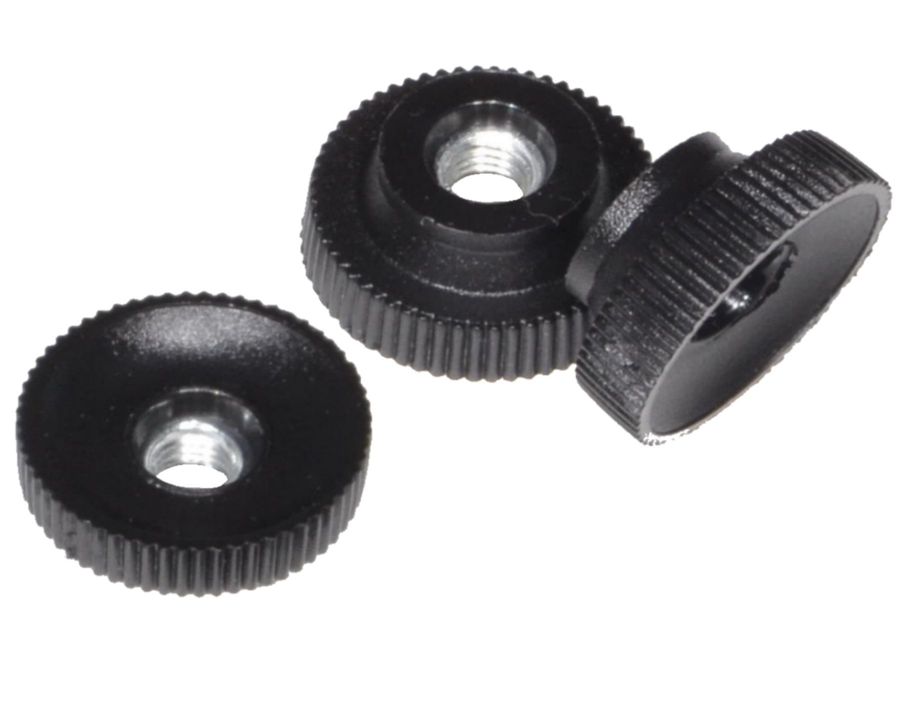 100 x Rändelmutter mit Schaft und feinem Rändel Material: Polyamid (PA) - Farbe: Schwarz Gewinde: M4 - Stahl verzinkt - durchgängig