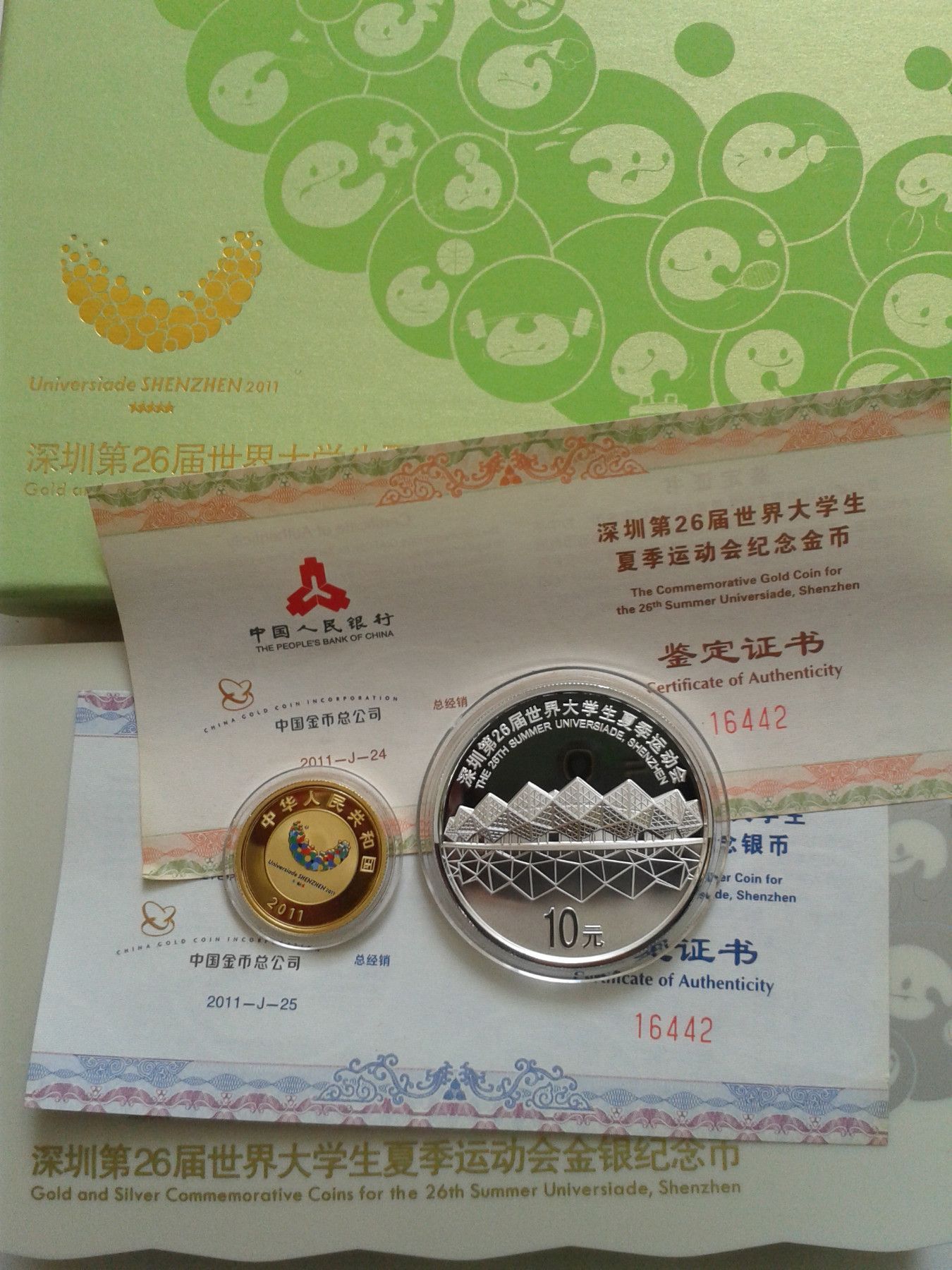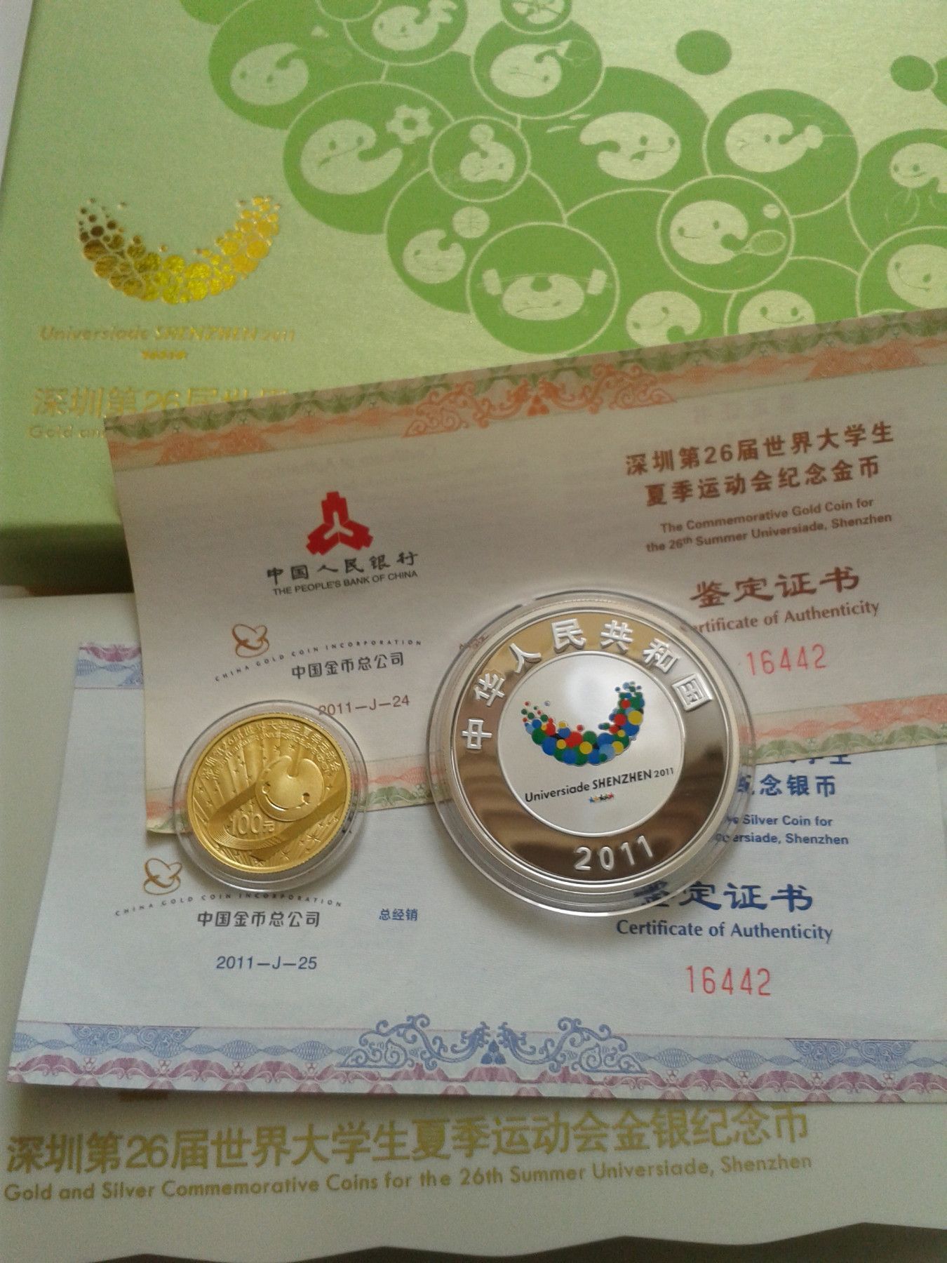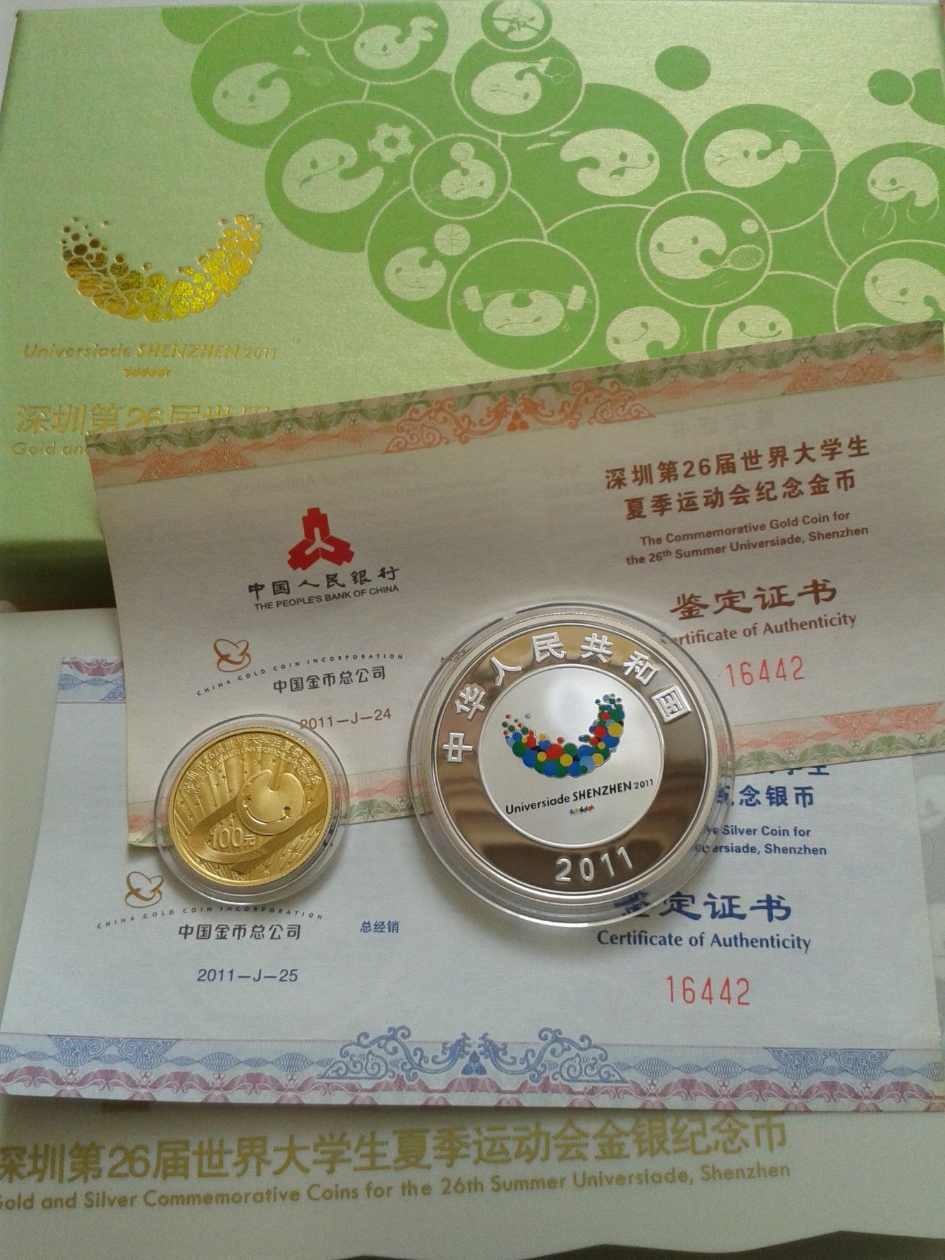 100 Yuan 2011 + 10 Yuan 2011 PP China Universiade Shenzhen 1/4oz. Gold/ Silber Satz