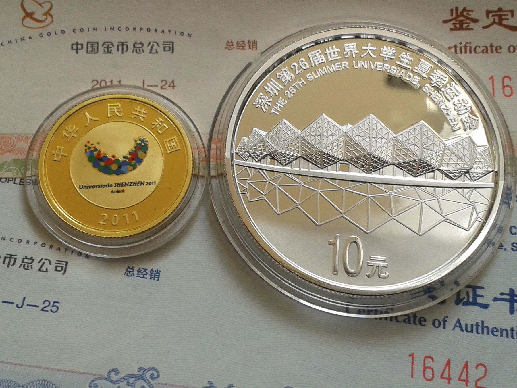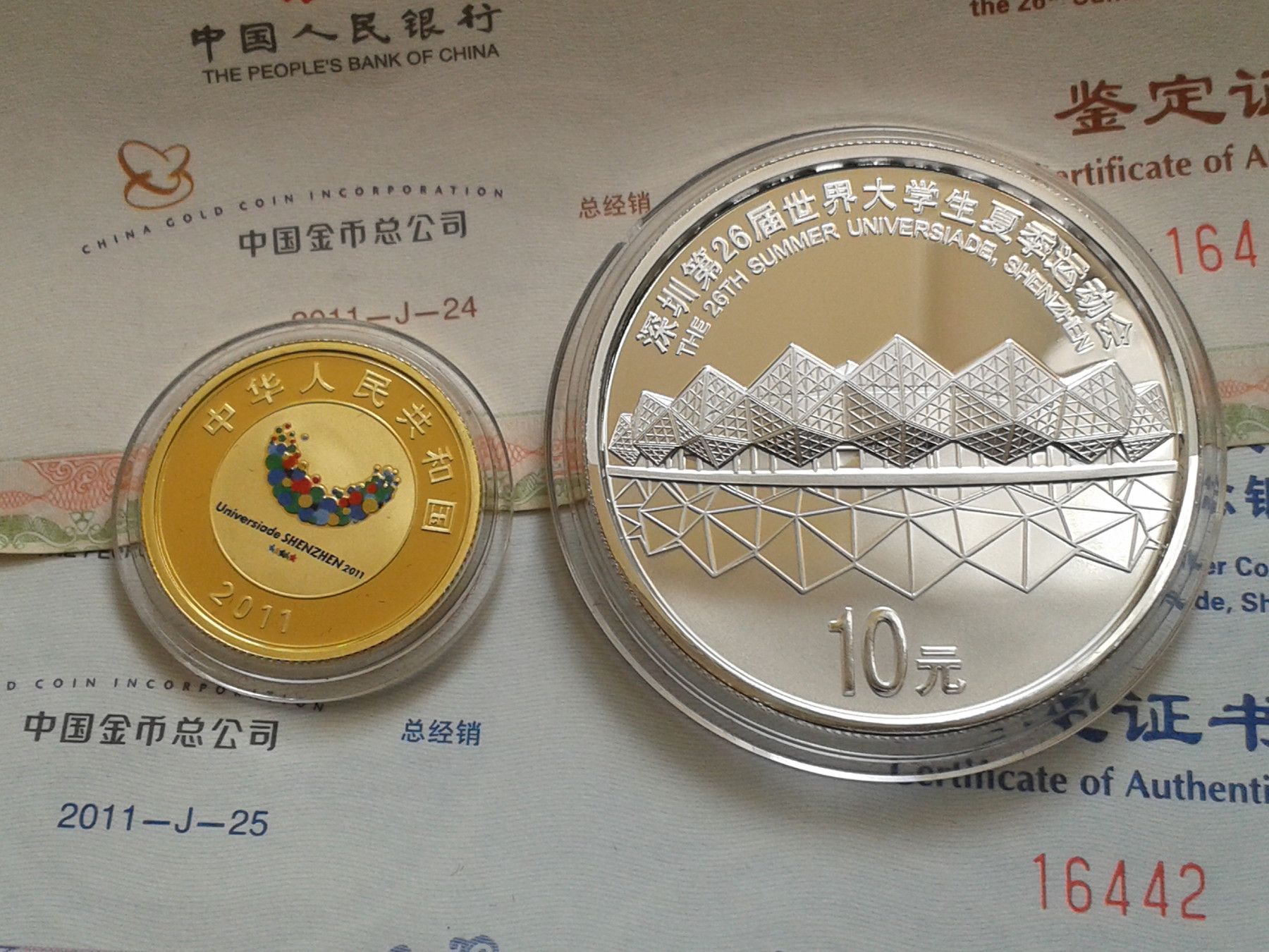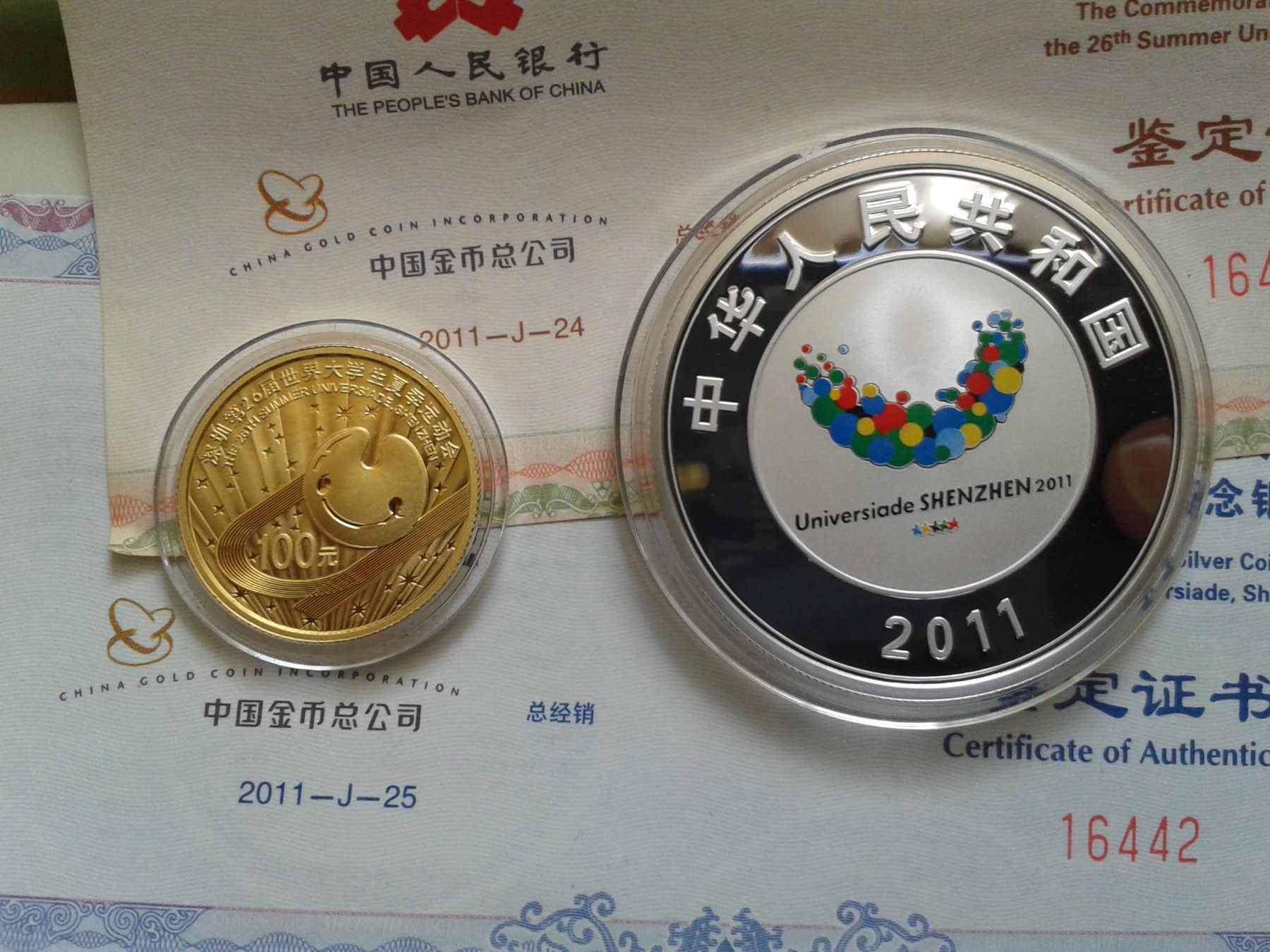 100 Yuan 2011 + 10 Yuan 2011 PP China Universiade Shenzhen 1/4oz. Gold/ Silber Satz