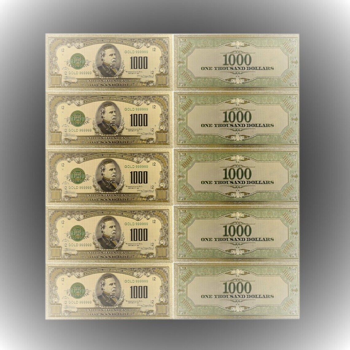 1000 Dollar von 1918/vergoldete Banknote USA/Souvenir (USA211025)