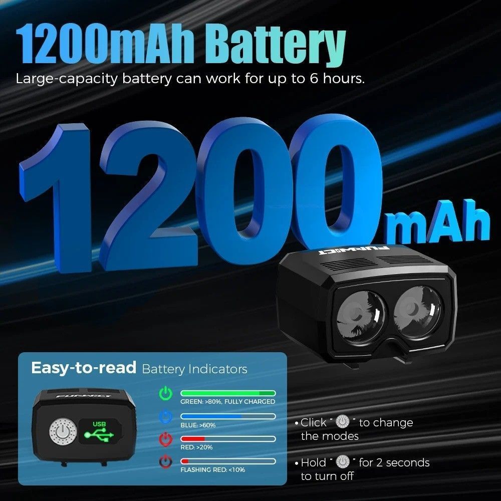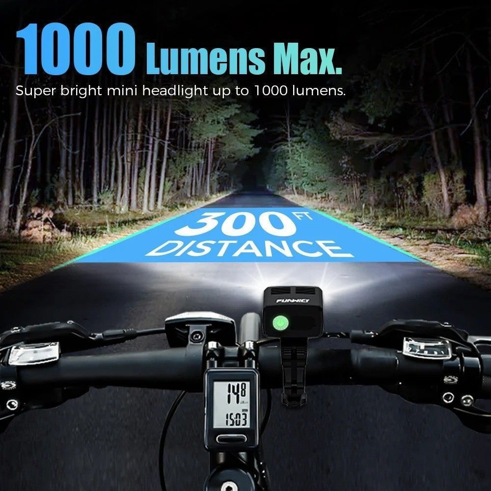1000 Lumens Bike Helmet Light USB Charging Waterproof Flashlight Bicycle Headlight