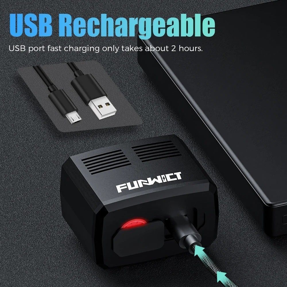 This high-intensity bike helmet light emits a powerful 1000 lumens, providing exceptional visibility for MTB and road cycling in low-light conditions. The LED front lamp is engineered with a waterproof rating, ensuring reliable performance in all weather. It features convenient USB charging for easy