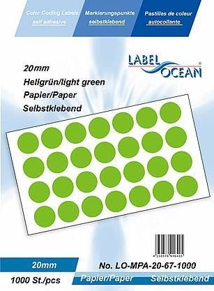1000 Markierungspunkte, 20mm, Papier, hellgrün von LabelOcean